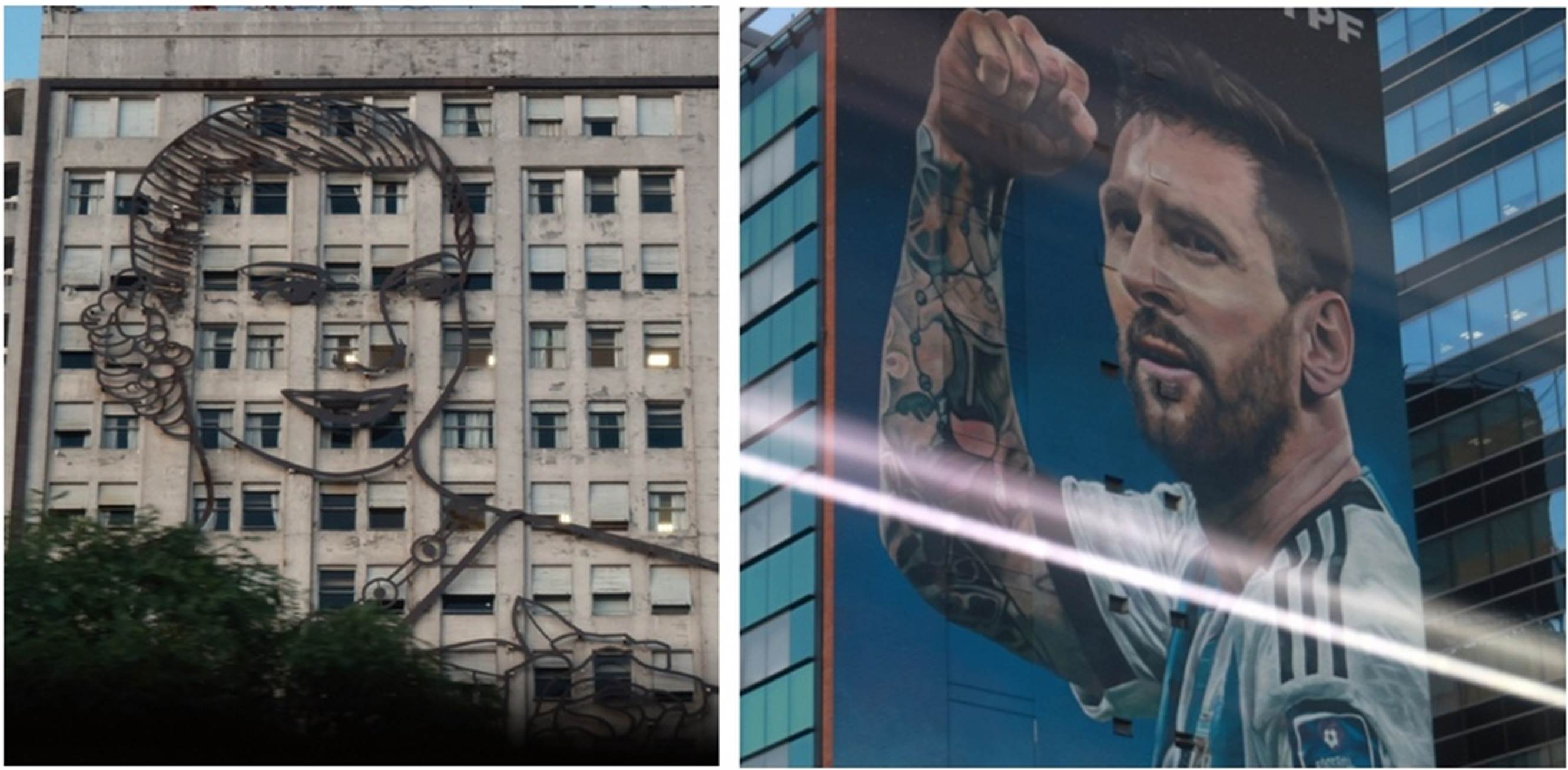 We soon piled back into the bus and took a somewhat round-a-bout, sight-seeing route back to the hotel. At one point we passed two buildings somewhat close together which were celebrating the two current heroes of Buenos Aires.