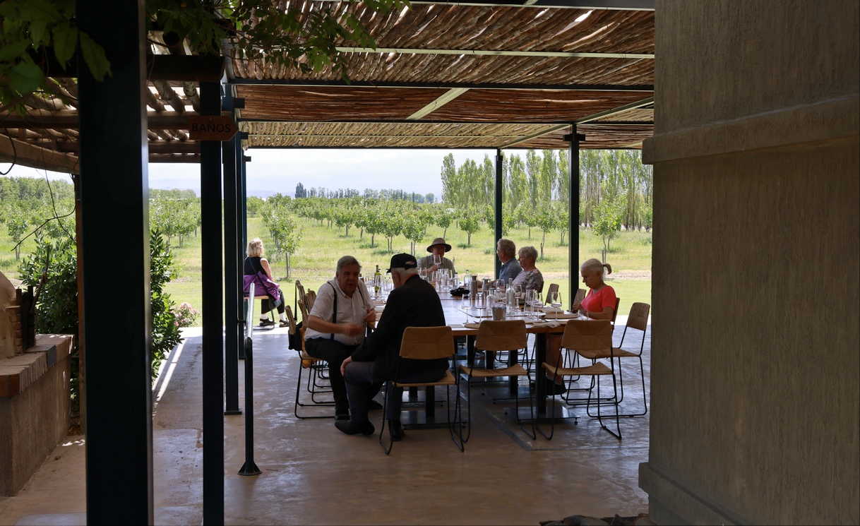 Our next stop was Bodega Caelum and represented quite a change from Finca La Cayetana. Caelum is not really a large winery by Mendoza standards (about 75,000 bottles a year), but it was a very new and modern facility. Bodega Caelum does have one rather unique and unusual feature: they also raise and harvest Pistachios on a commercial scale. We saw Pistachio trees in several places on their property and there was a good-sized grove (orchard?) of young trees just off the patio where we had our lunch. If you are wondering about the meaning of the word “Caelum”, from the winery’s web page: “Caelum is a small constellation that can be observed from the southern hemisphere. It represents the chisel, the sculptor's tool. As the chisel is for the sculptor, our hands are the tool for making our wines.”
