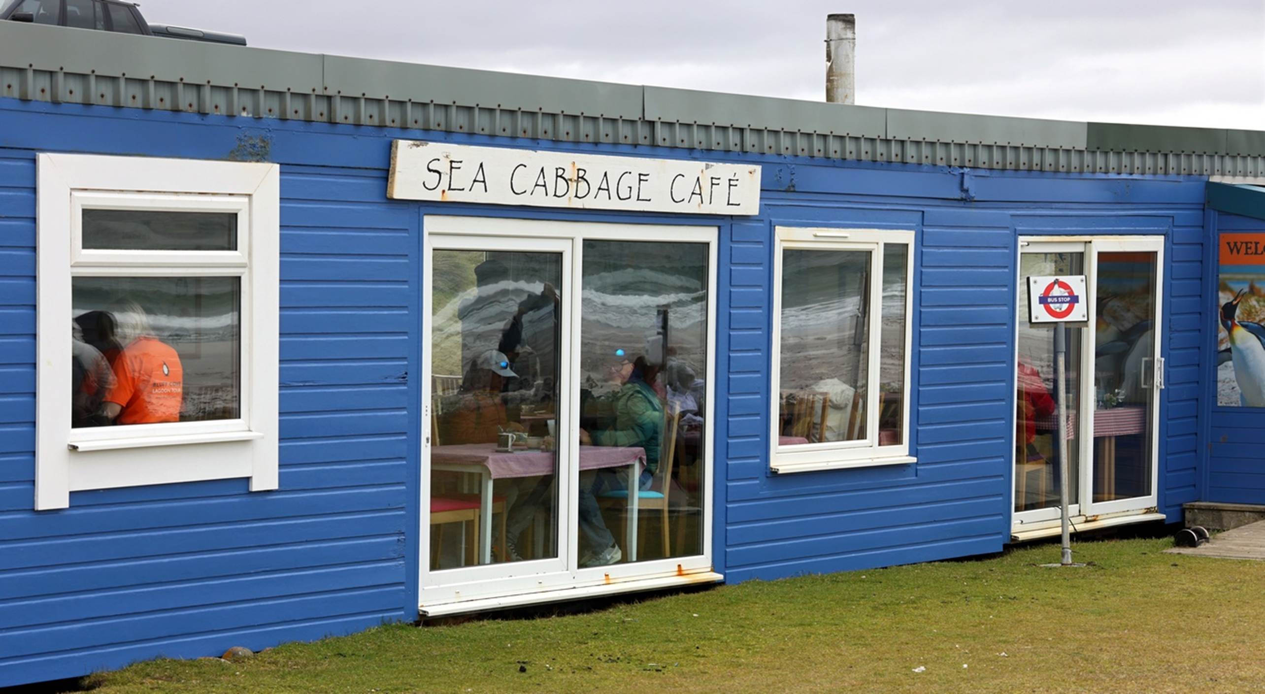After watching the penguins for 30 or 40 minutes, we were sufficiently chilled to look for a way to warm up a bit and, of course, the Bluff Cove people had just the thing for us: a café with complimentary tea or coffee and a choice of breads/rolls in the “Sea Cabbage Café”. There was no charge for this, but I think most people left a generous tip for the ladies running the Café. In addition to the café, there was a small, but interesting, museum of the islands, with a focus on the penguins, and a small gift shop with some very cute penguin items. We warmed up in the museum and gift shop a couple of times during the two hours we were at Bluff Cove.
