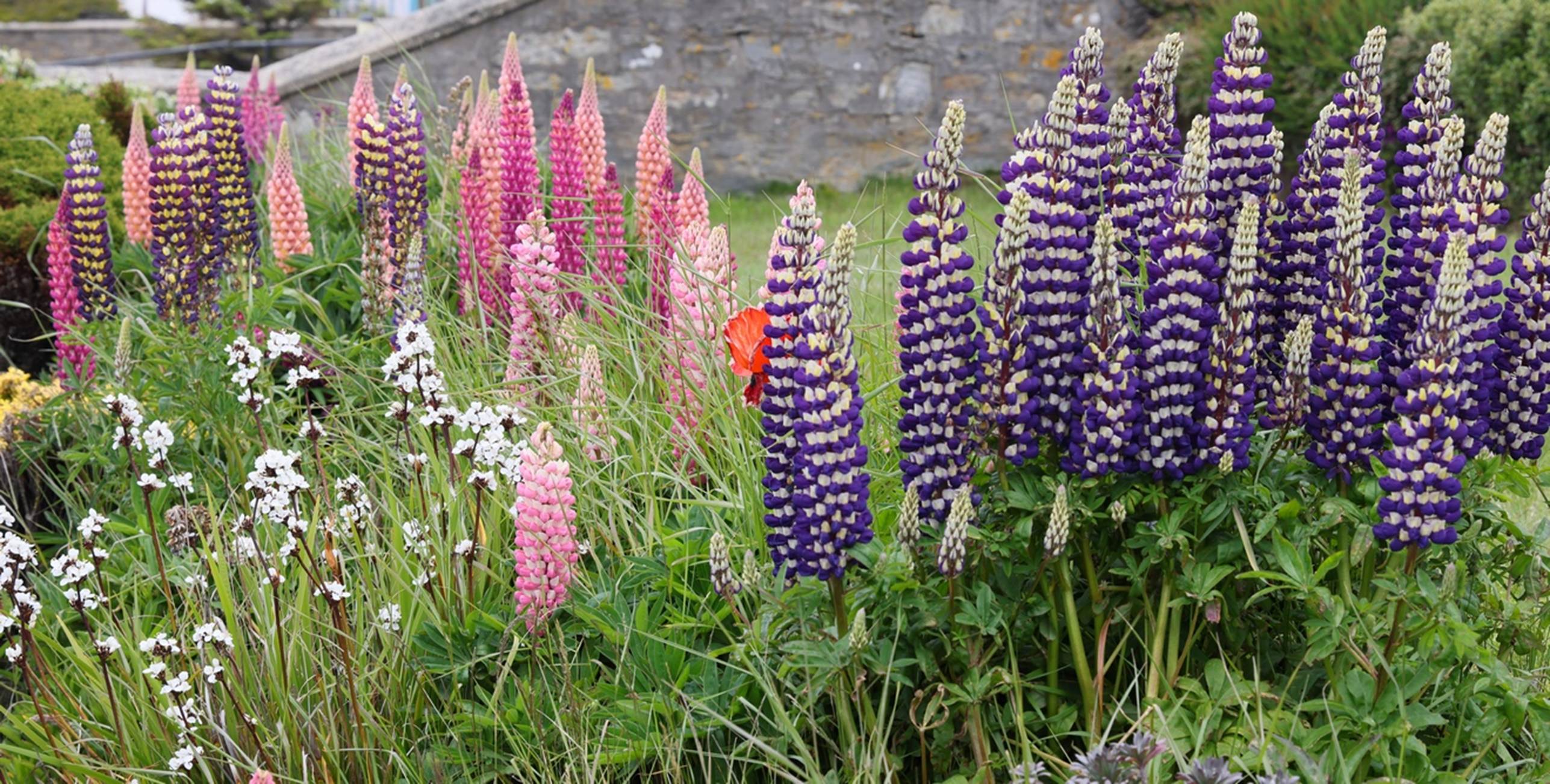 There were also several plantings of colorful plants and flowers along the walkway in front of the church.