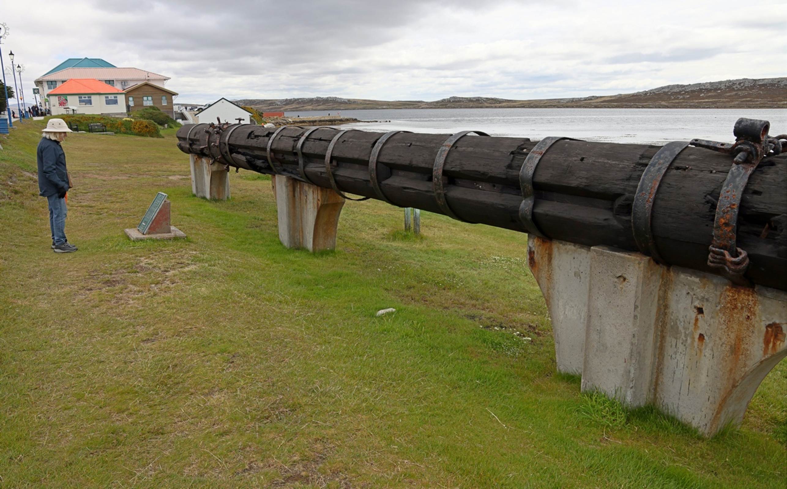 Across the road from the church is what remains of one of the masts from what was once (1845 – 1853) the largest commercial (non-military) ship in the world. The SS Great Britain had a rather checkered history, spending much of its life as a partially sunken hulk in the Port Stanley harbor and now, after being towed back to England and restored, is on display in Bristol Harbor.