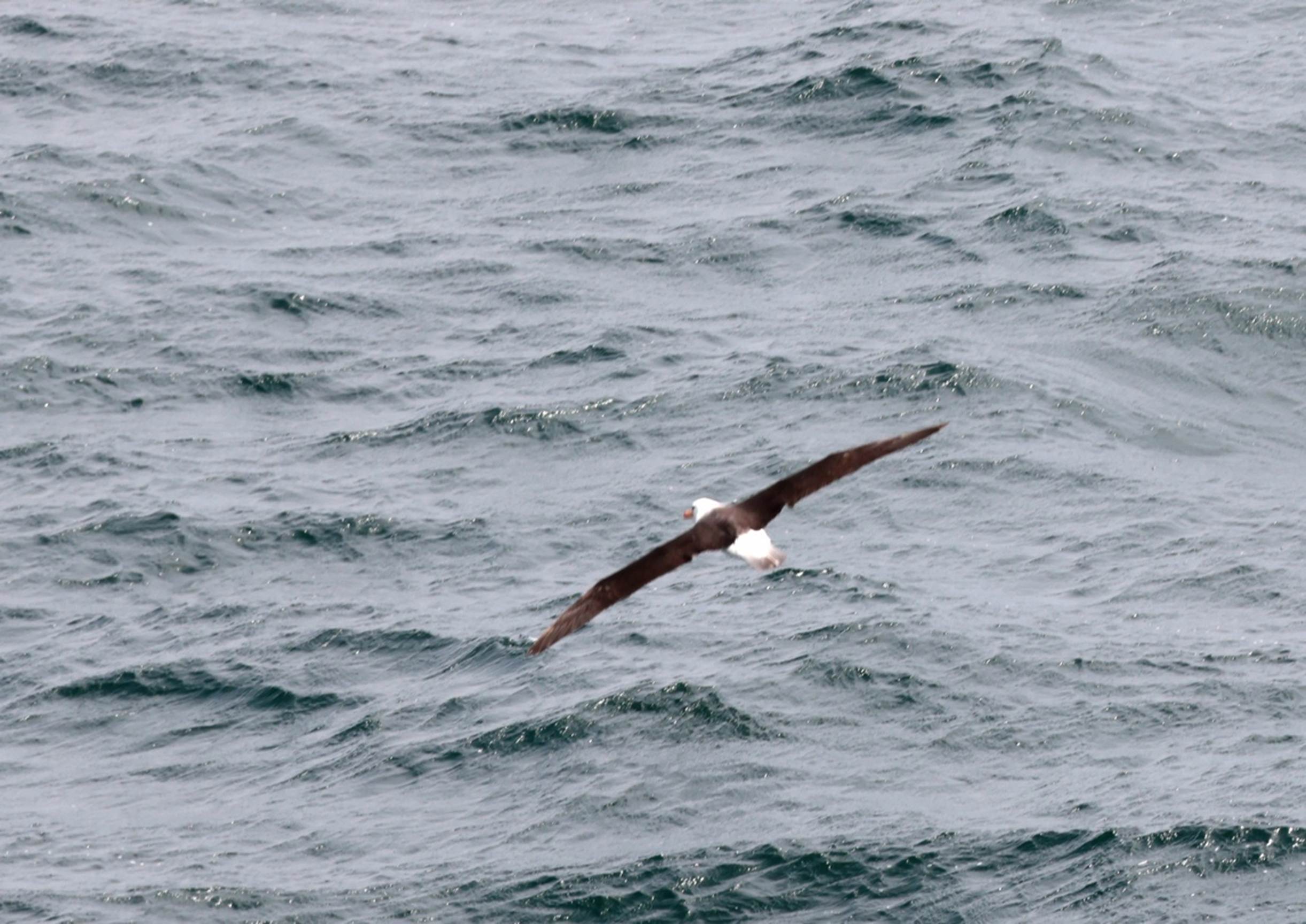 Today was another “Sea Day” on the way from the Falkland Islands to Puerto Madryn, Argentina. The weather continued to be cool and windy, making our walks on the deck rather brisk and almost an adventure in themselves. For a while, we did have some company in the form of a Albatross (or, it might have been a Giant Petrel) that flew alongside the ship.