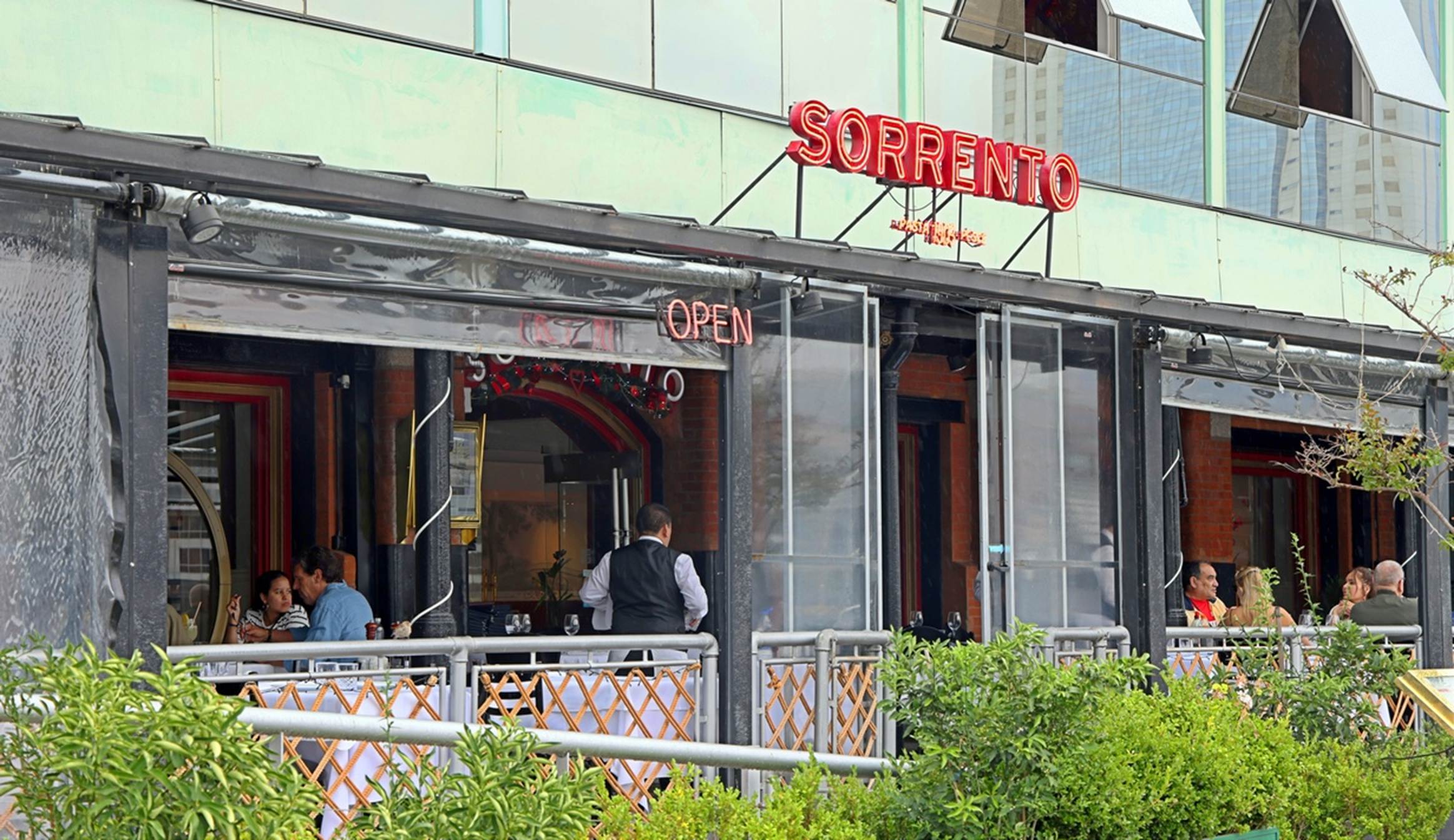 Of course, it had started to rain again: not hard, but enough to encourage us to find some shelter, preferably in the form of a good place to eat. We came to a restaurant named Sorrento, took a quick look at the posted menu, and went into the covered patio area where a hostess pointed us to a good table. Without going into a lot of detail, this was one of the best meals we had all trip: the bread was warm and tasty, the wine was delicious, the calamari appetizer was huge and tasty, our entrees were perfectly done, and the service was wonderful. Just an overall perfect meal.