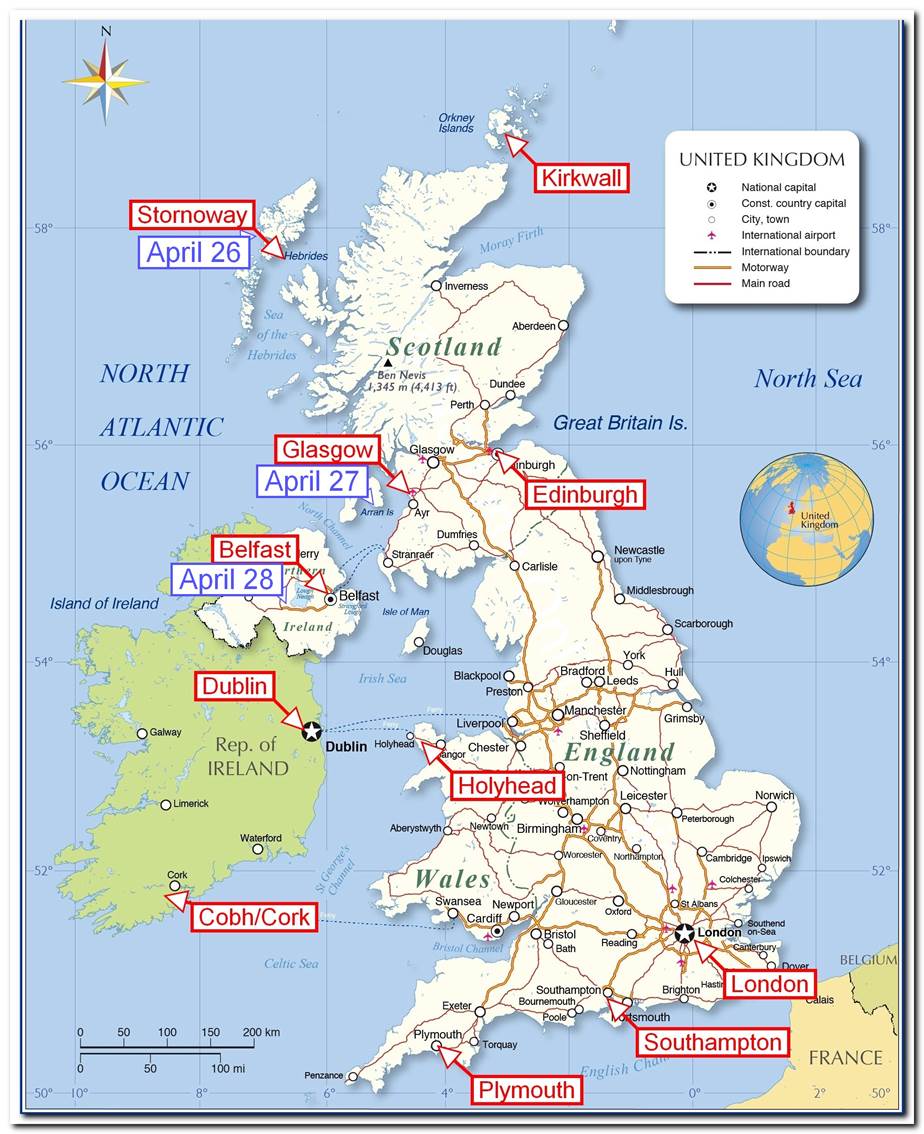 We have two more stops in Scotland, then head to Northern Ireland. We will stop at Lewis Island, in the Hebrides, then call on Glasgow, the second largest city in Scotland, before heading to Northern Ireland and Belfast. The weather continued cool and breezy, but somehow we continued to avoid any significant precipitation.
