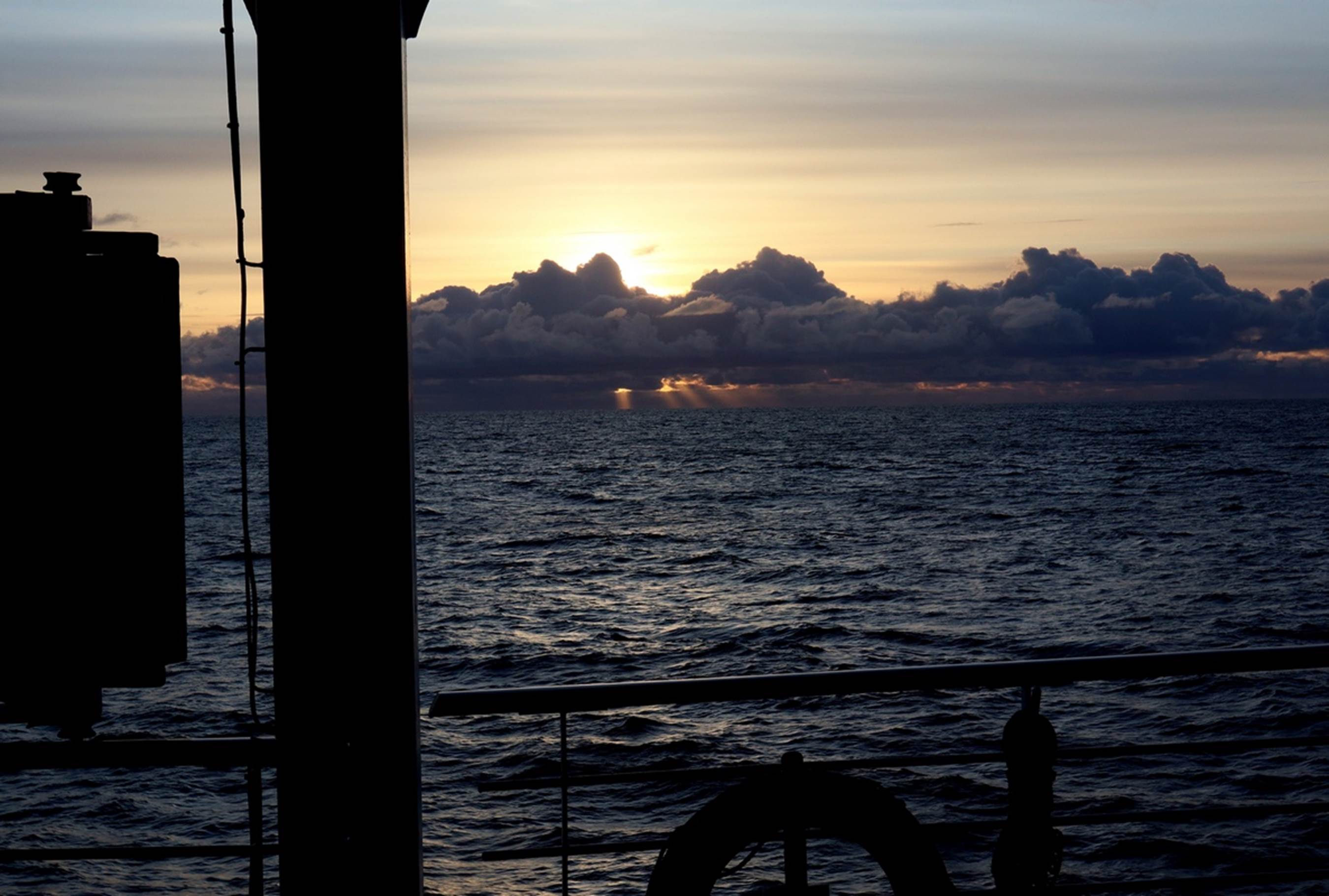 The shrub is called Grouse and was quite decorative this time of year. We also saw numerous fields throughout the British Isles covered with some crop that had a bright yellow flower. Some of the fields looked almost like a solid carpet of yellow. These turned out to be Rapeseed fields in full bloom. Rapeseed is closely related to Canola and they are both used to produce cooking oil, and the pressed and dried seeds can be used for cattle or sheep feed. The rest of the day followed the normal pattern: back to the ship for a slightly late lunch, relax and read until early evening. I did stop to take a photo of an interesting, if not especially colorful, sunset.