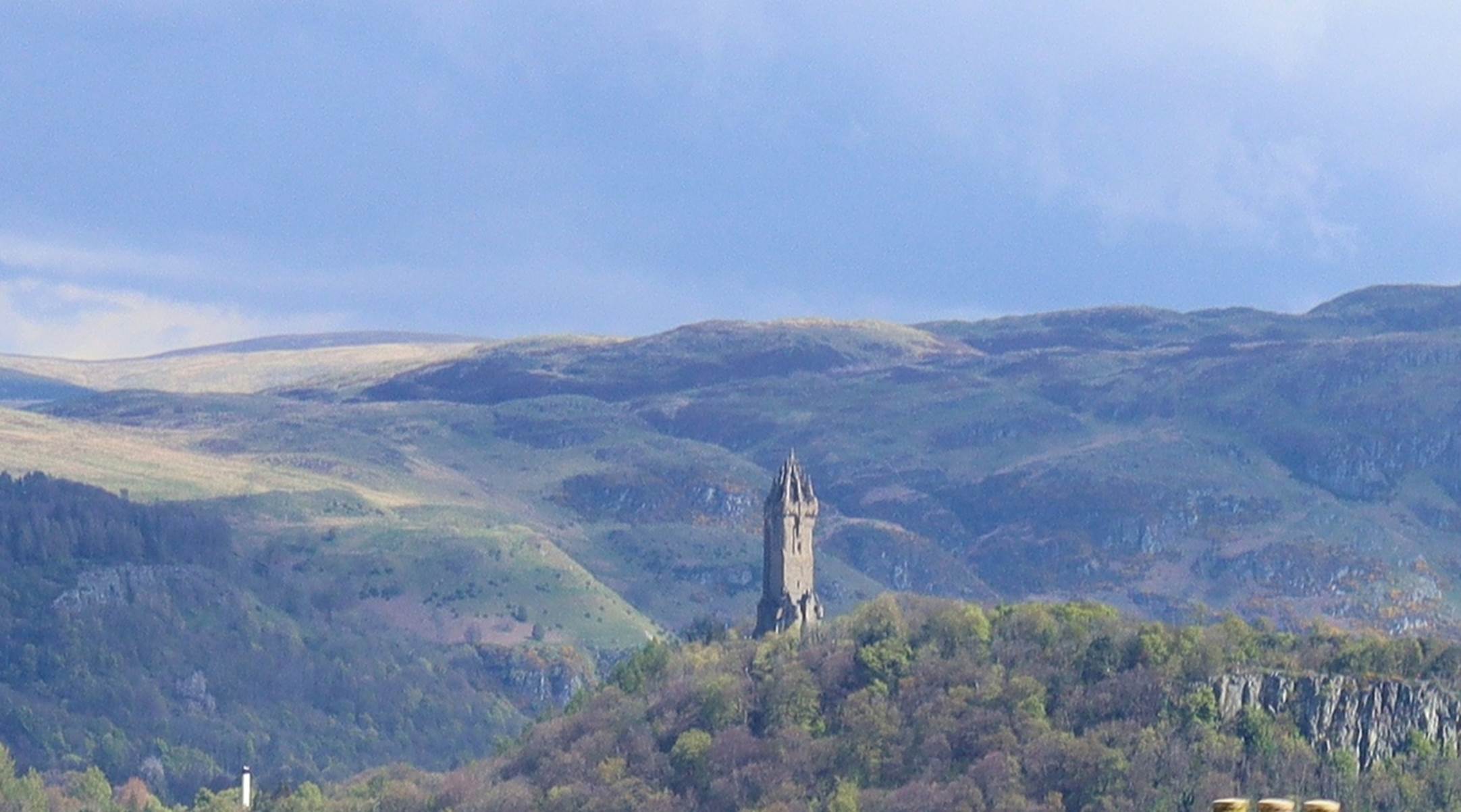 As usual, we had a bus ride, about 45 minutes, through the beautiful countryside, to Stirling and the Stirling Castle. From the grounds at the front of the castle, you can see monuments to both William Wallace and Robert the Bruce.