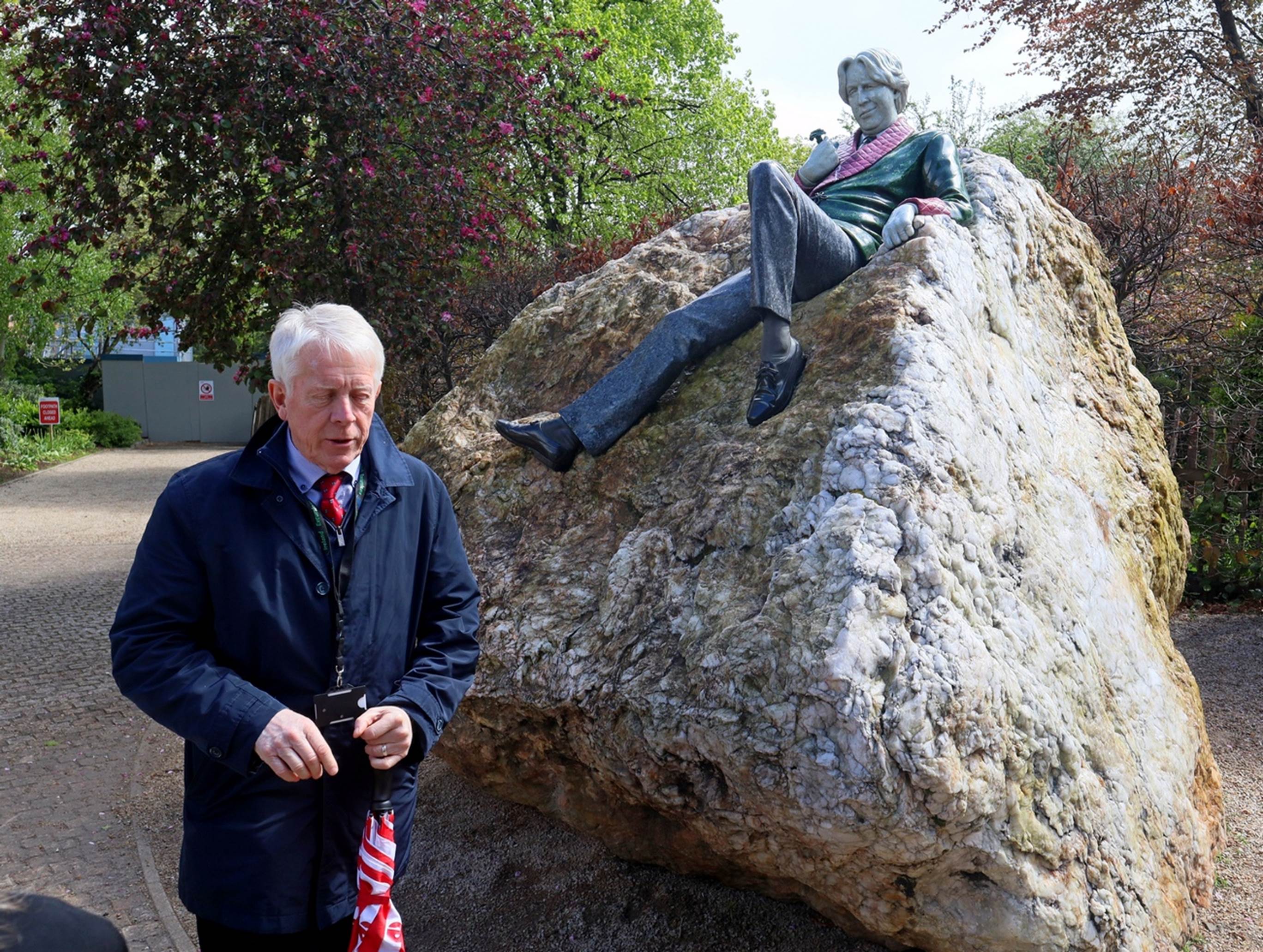 The bus let us out at the edge of Marrion Square Park (the green park almost in the center of the Google Earth image above) and our first item of interest was the memorial to Oscar Wilde. Wilde was born and spent much of his life in Dublin and apparently Wilde was quite a character, so the creator of the memorial made it very fitting for him. Besides the rather relaxed pose of Wilde, the direction he is facing and where he is looking is also significant and, no, he is not really looking at our guide. Just out of the photo to the left is a statue of Wilde’s wife, and he is looking almost directly at her. Across the street, just beyond his wife, is the house where he grew up. All in all, I thought it was a very appropriate, if unconventional, memorial to a rather unconventional author.