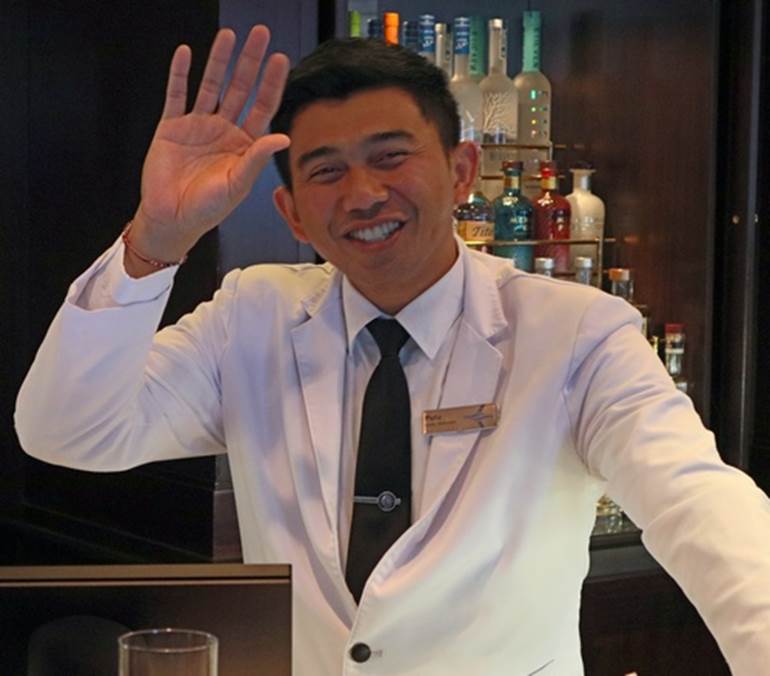The staff that we interfaced with were almost all very pleasant and helpful. Our cabin attendant was almost magical in his ability to clean and service our cabin while we were gone somewhere, and he always did an excellent job. Putu and Phillipus in the Martinis bar were always welcoming and helpful. The servers in the restaurants were good at their job and the one time we encountered a significant problem, a manager followed up several times to make sure we were satisfied. The Cruise Director, Leslie, was around to introduce the various entertainers and make general ship wide announcements, but I seldom saw him around the ship talking to people. I got the impression that he was bored with the job and was just going through the motions. We saw the captain and his top staff at the Captain’s Cocktail Celebration, but I don’t remember seeing any of them around the ship afterwards. The captain did not seem real comfortable speaking English so perhaps he was avoiding conversations with the mostly English-speaking passengers.