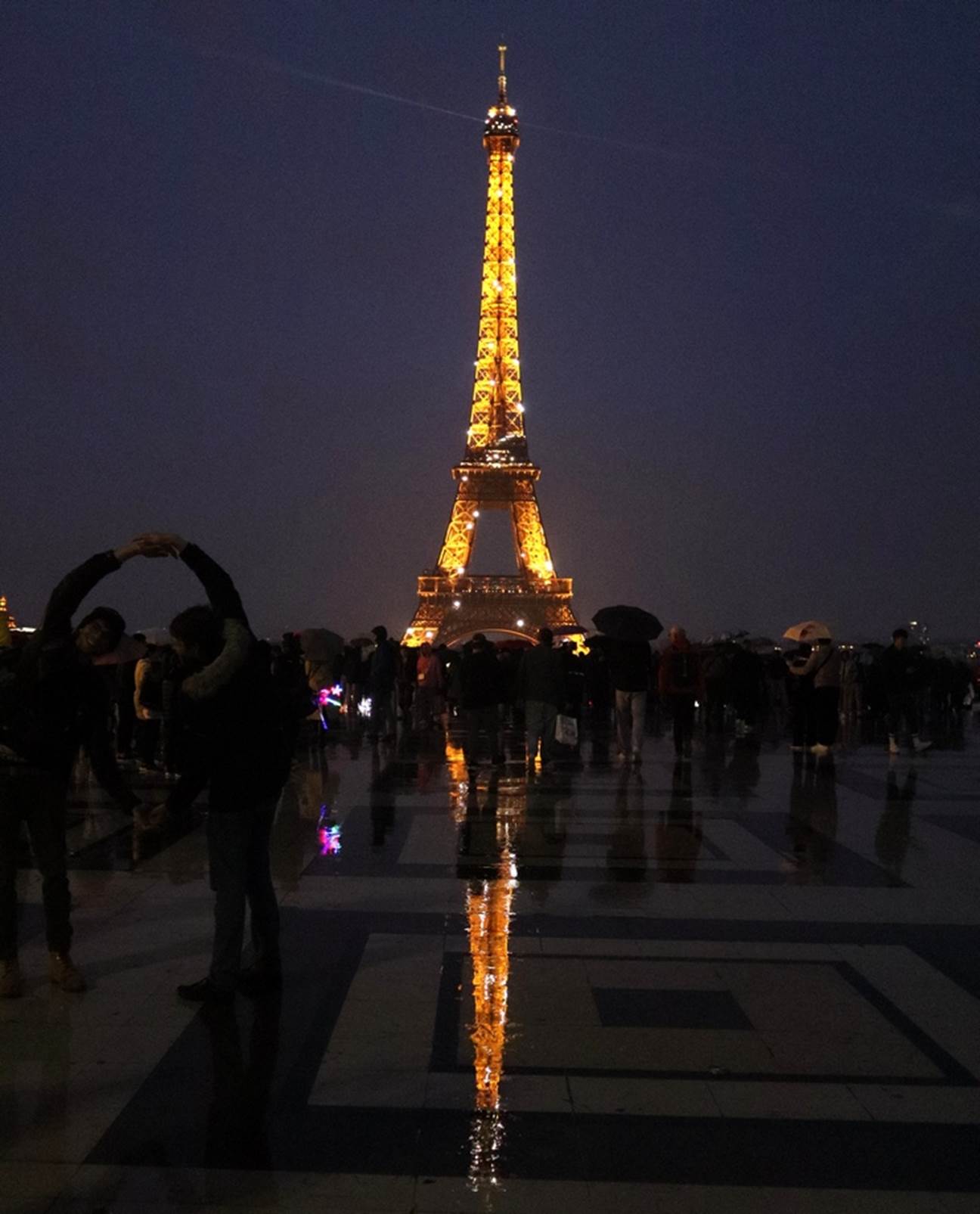 After dinner we gathered together, reboarded the little train, and headed back to the Moulin Rouge where we got back on our bus to continue our “Illumination tour” of the City of Lights at night. Along the way we passed the Arc de Triomphe, but I was a little disappointed that it did not have more dramatic lighting.