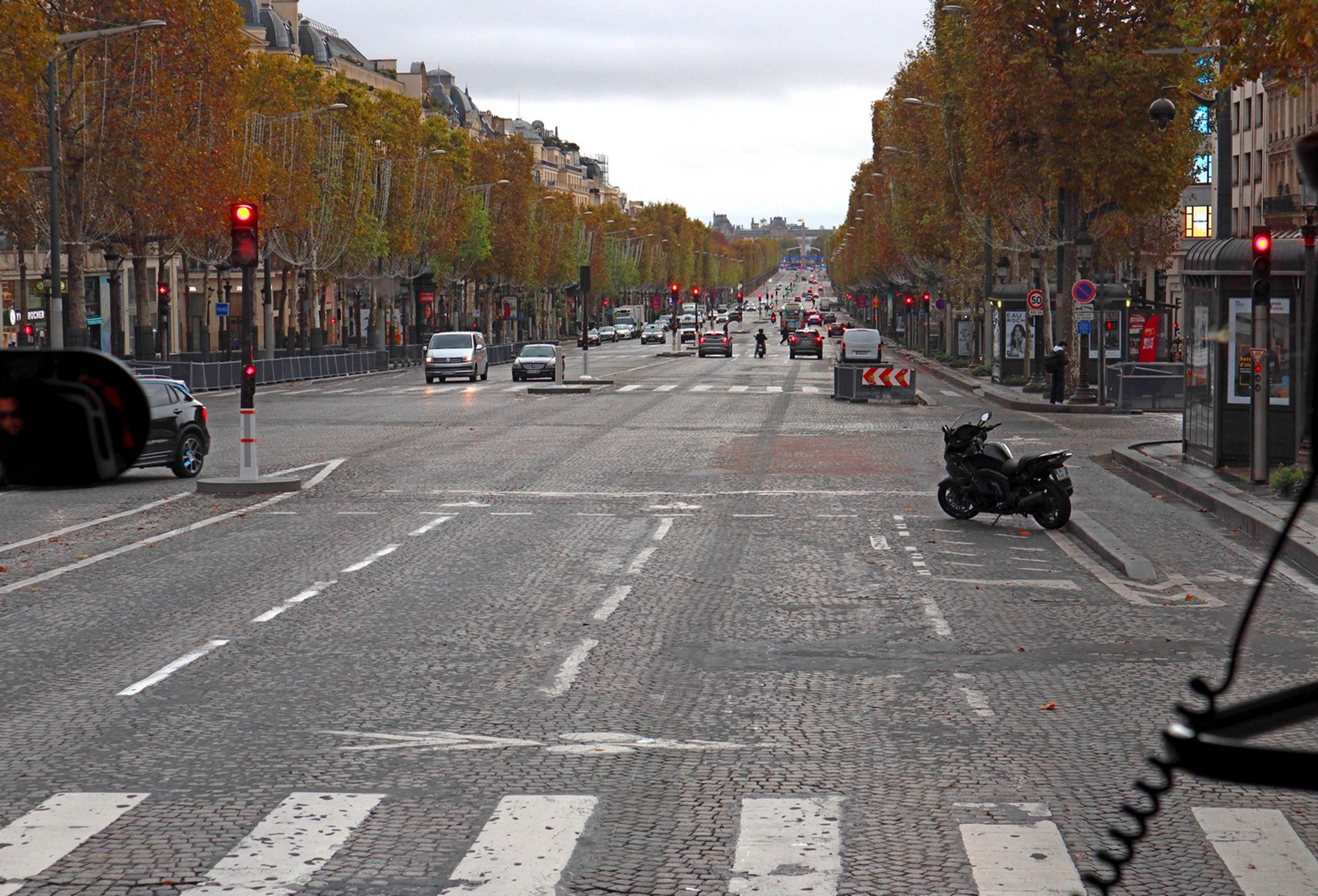 Avenue des Champs Elysees (through the bus front windshield) on a Sunday morning
