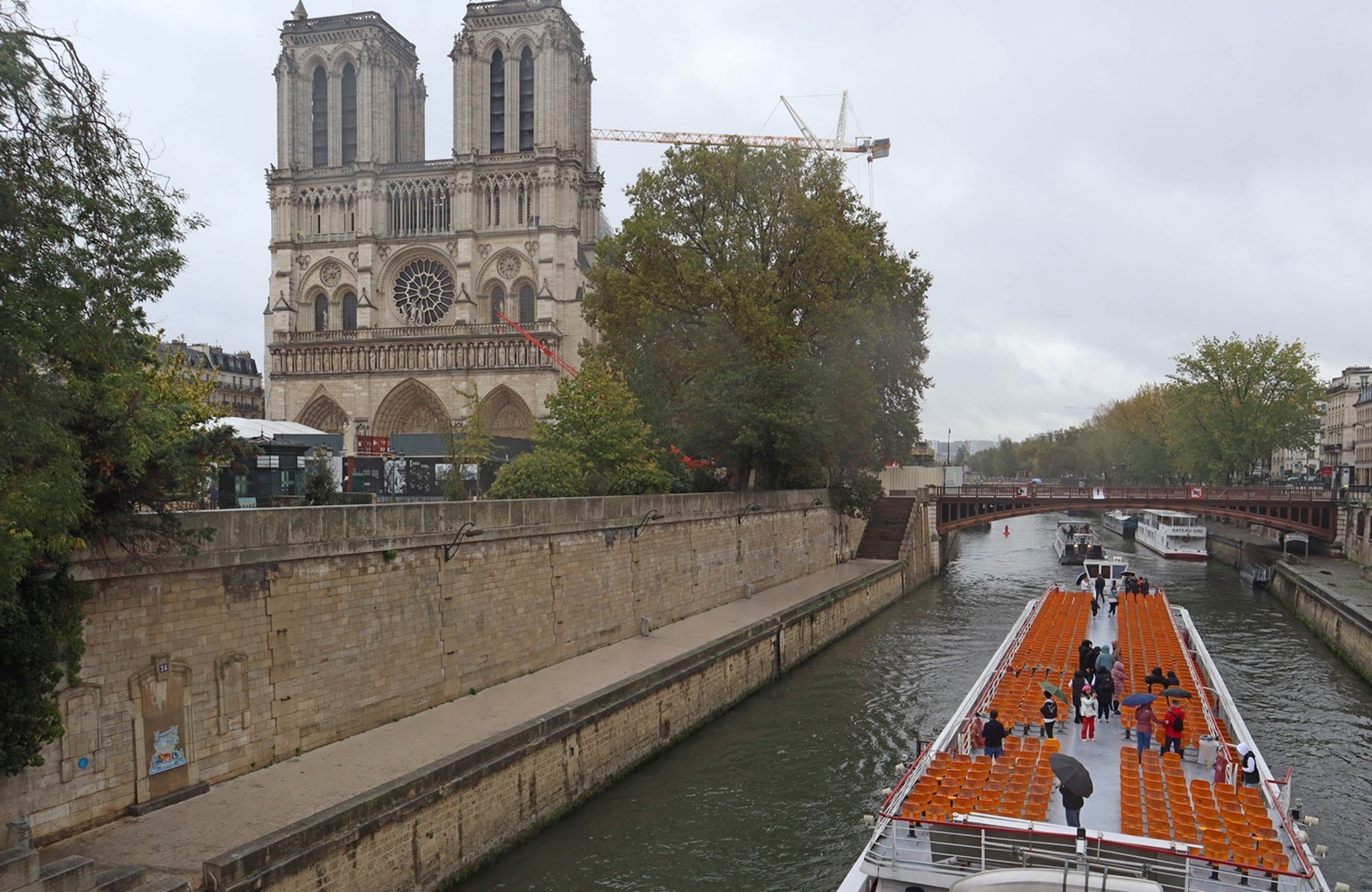 It had stopped raining, so we got out of the bus and did a short walking tour around the Cathedral, taking in the work being done. We were told that they hoped to have the restoration complete by the 2024 Summer Olympic Games in Paris, but I have to doubt that will happen. There was a lot of work going on (well, not on Sunday of course) but there remains a tremendous amount of work to do.