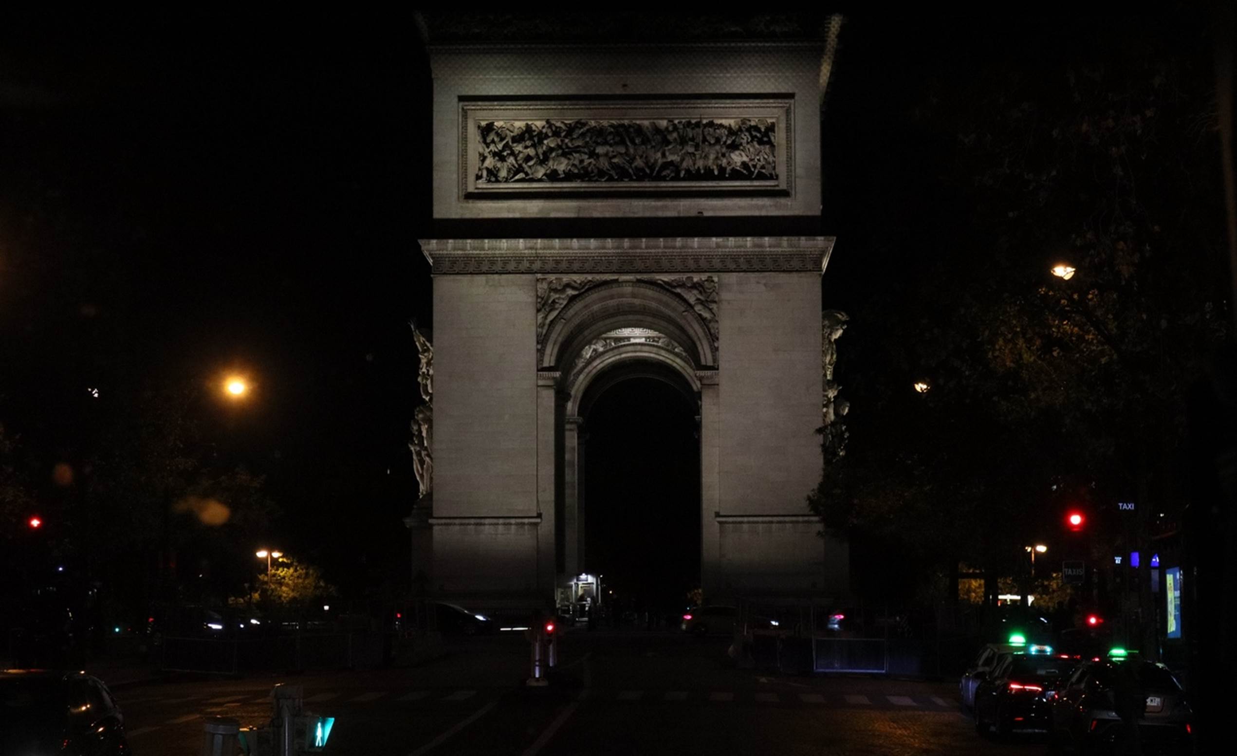 The Arc de Triomphe at night: less dramatic than the Eiffel Tower