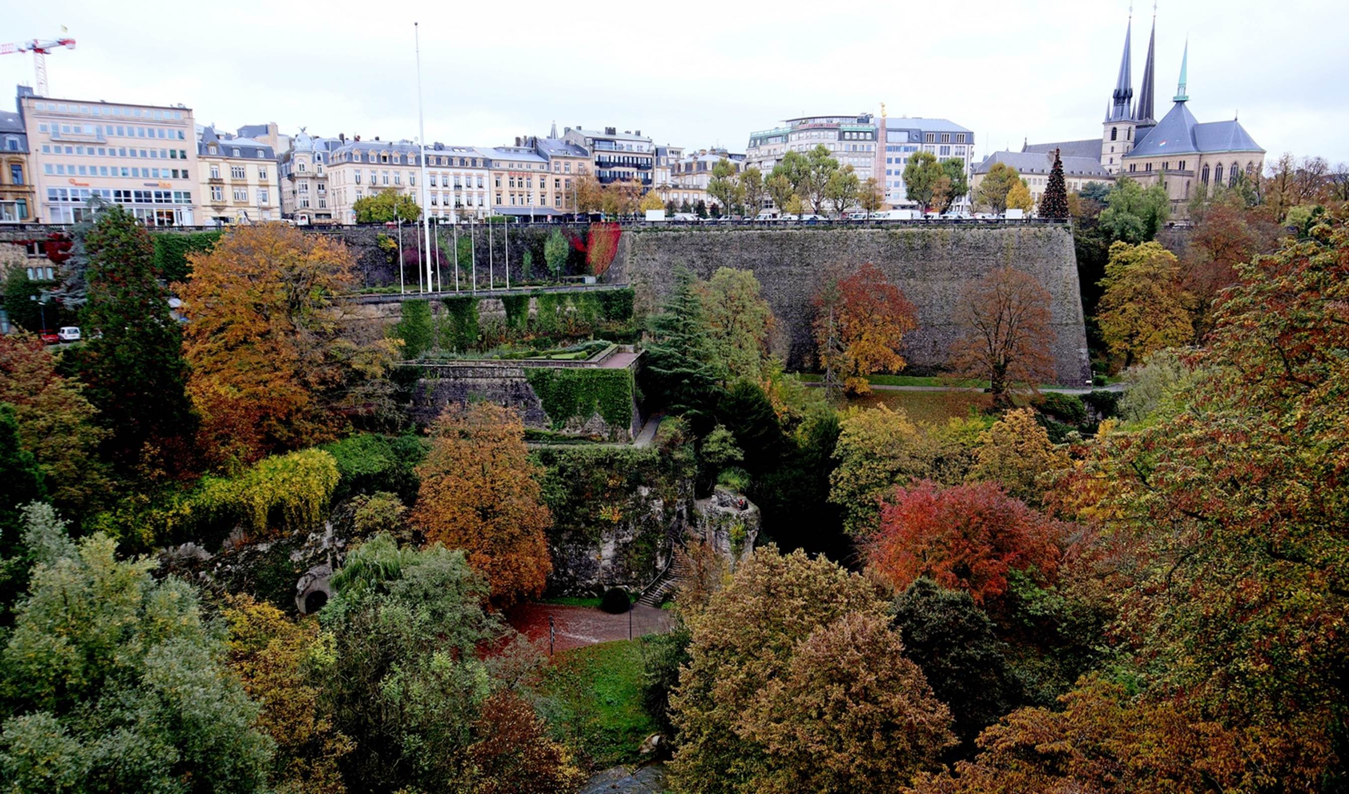 We needed some smaller change/bills to use for tips (Euros) so we bought some coffee at, what else? Starbucks! The train arrived right on time and we found our comfortable seats for the 2 hour and 15 minute trip to Luxembourg. This was one of their fast trains and I discovered that it is very difficult to get a decent photo from a train traveling at 200 mph. Plus, the photos I did get were not very interesting since a still photo cannot really show the sense of speed. So here is a composit video of the trip: leaving Paris, speeding along the way, and arriving in Luxembourg. Along the trip there were only a couple of reasonably small towns and many agricultural fields. There was some kind of delay a couple of miles short of Luxembourg and we had to wait about 10 minutes before covering the last few miles, arriving about 15 minutes late.