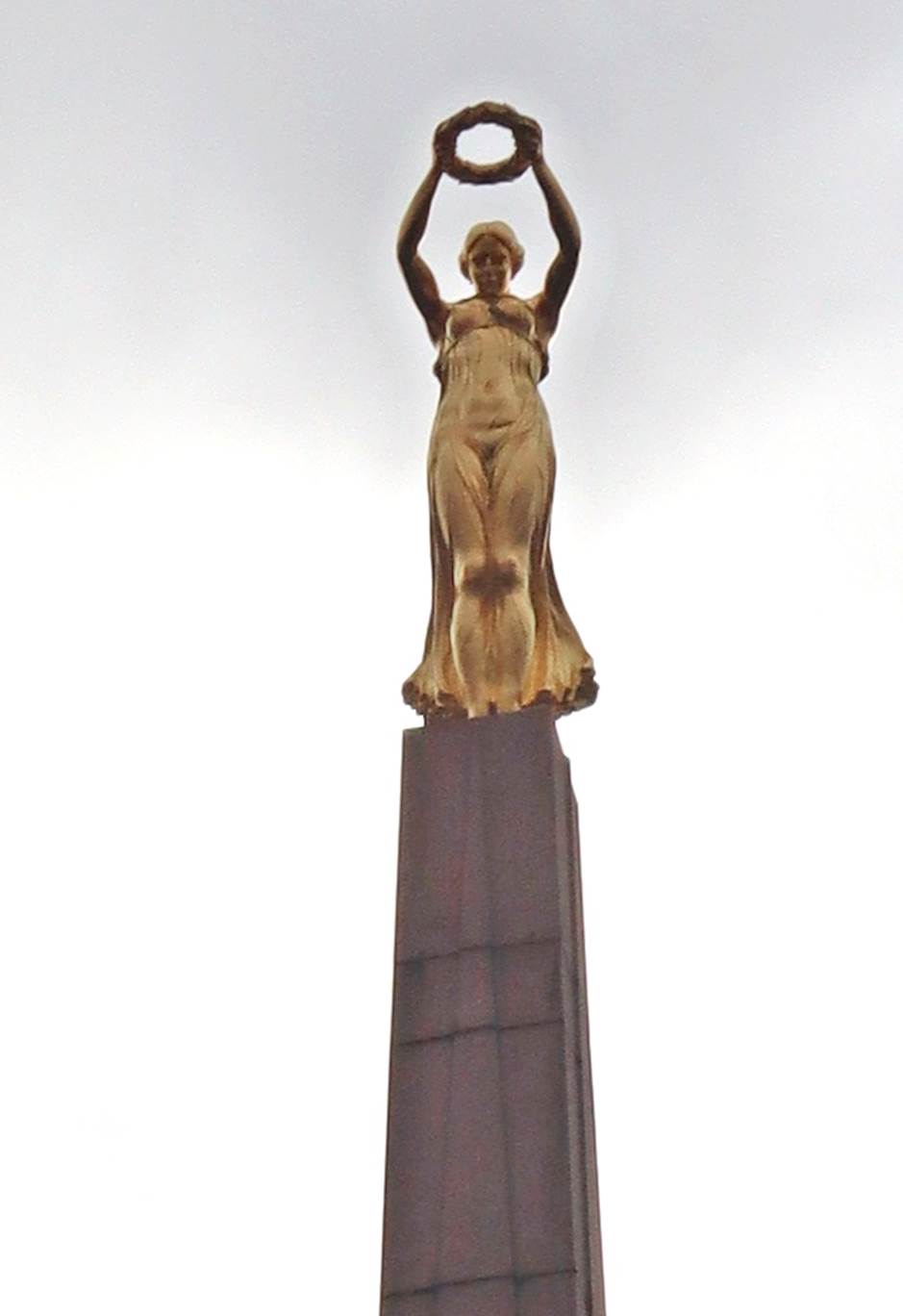 The purpose of the memorial is to remember and honor the thousands of Luxembourg young men who volunteered to fight in the world wars and Korea, many of whom did not return. Because of the purpose of the memorial, I thought the figures at the base of the spire were more significant than the the golden lady.