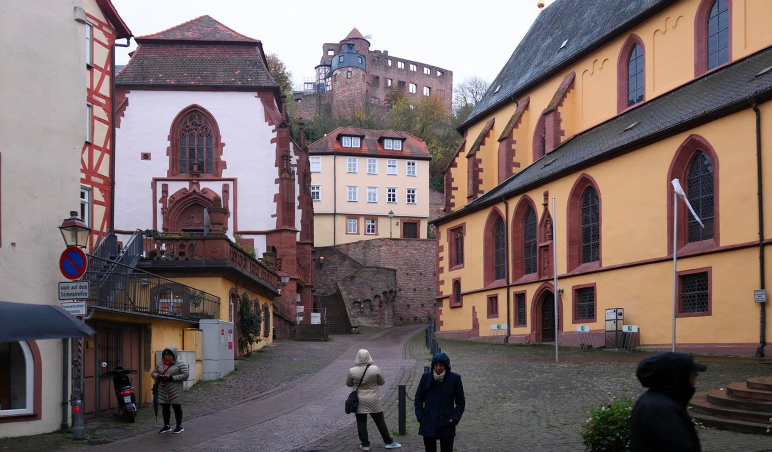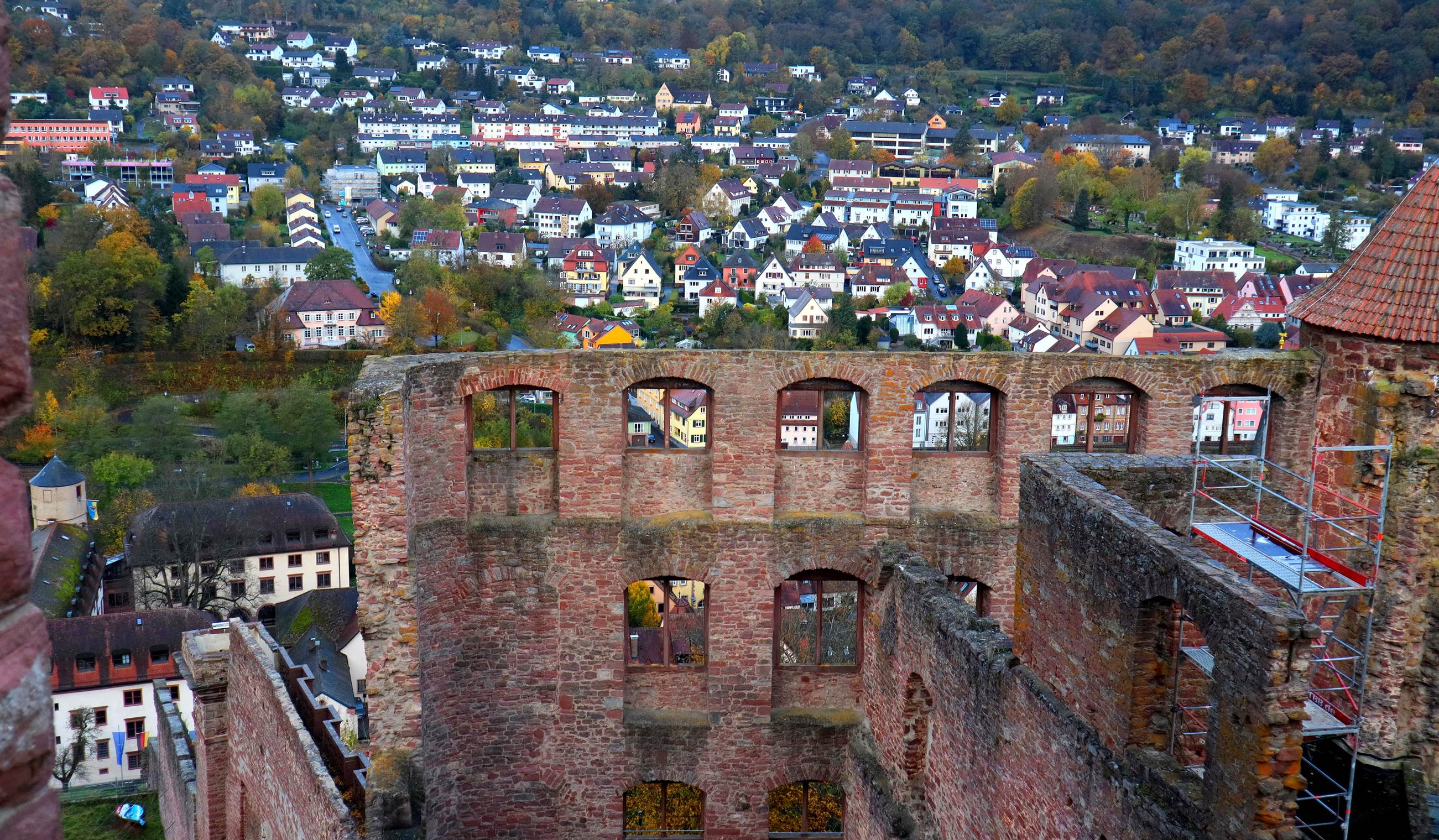Remember how, back in Bernkastle, we saw a house constructed with a small first floor to take advantage of the tax laws? We saw another example here on the Wertheim square. More important for us later, would be the “StadCafe” just to the right of the old house. Leaving the square, we started the climb up to the castle overlooking the town. The climb was not as serious as some of the other hikes we had been on, at least not to the entrance to the castle.