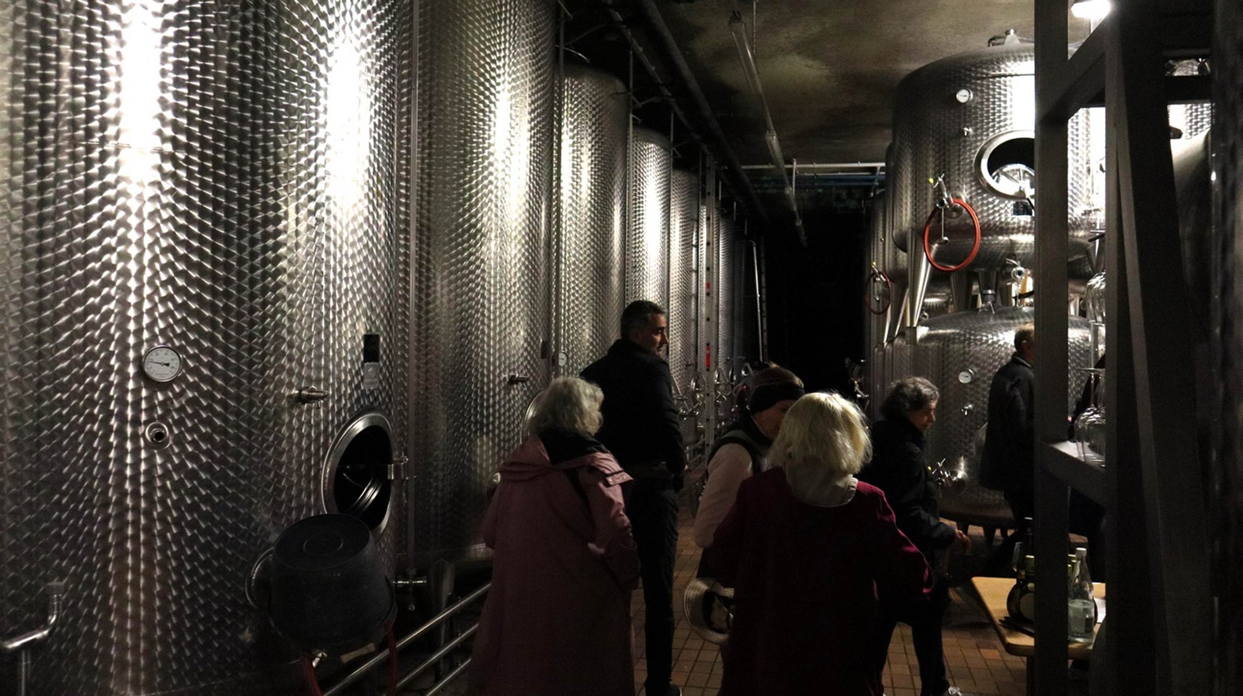 After tasting the first wine, our host took us on a tour of the the “barrel aging rooms” where the wine is stored and aged in very large oak casks. There were several rooms like the one in the photo below. Then we wandered back to the tasting area for the second wine.