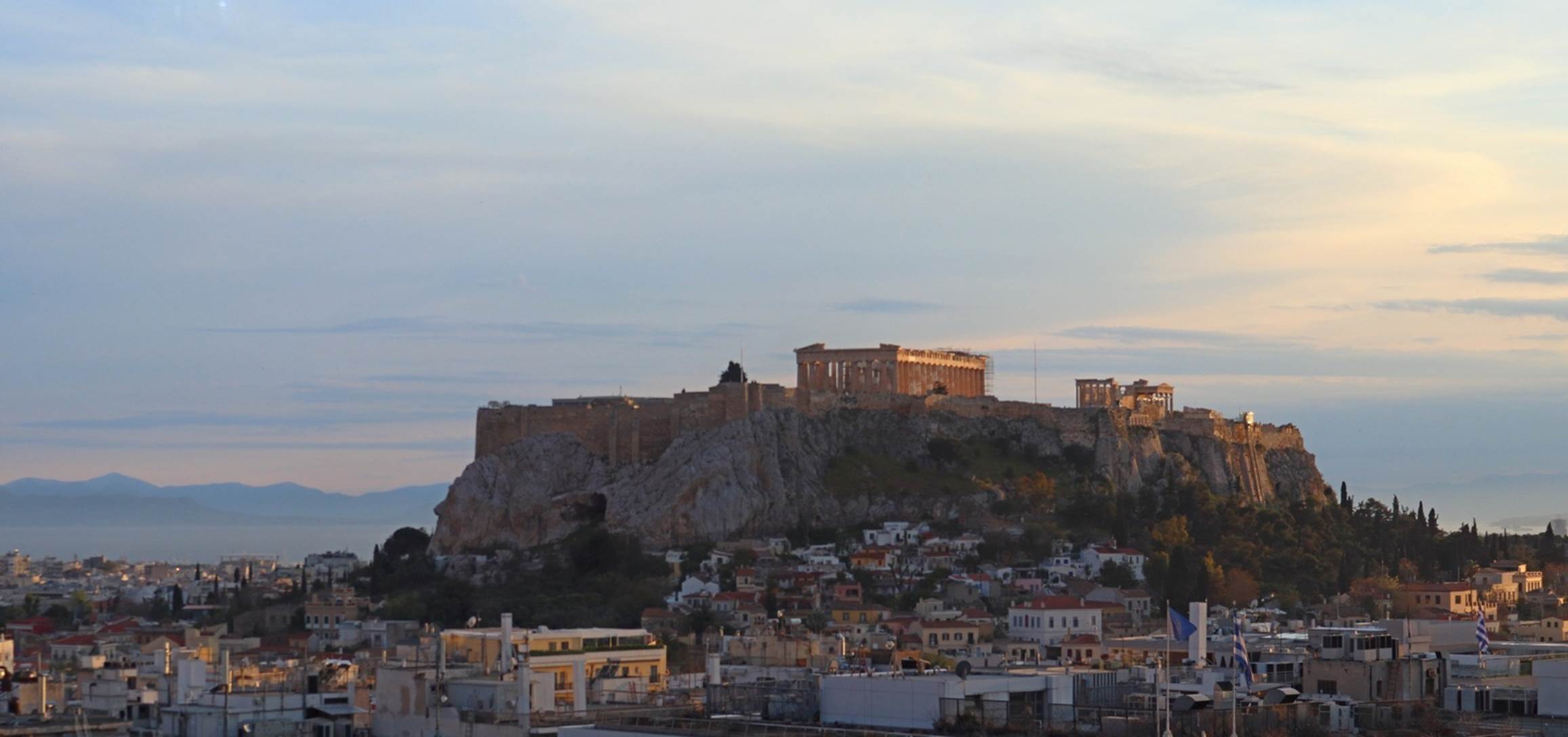 The Athens Acropolis, as seen from the restaurant atop our hotel.