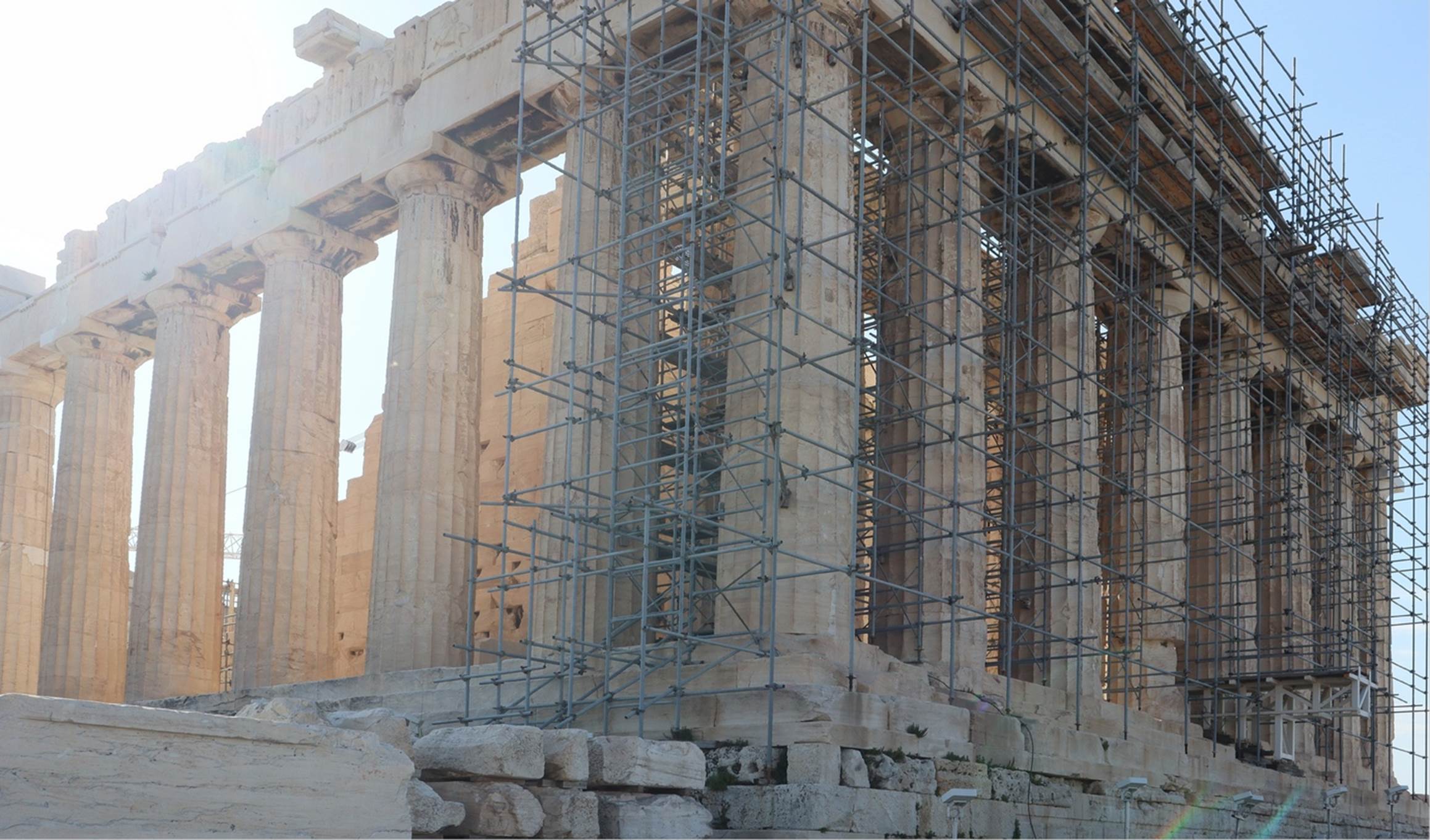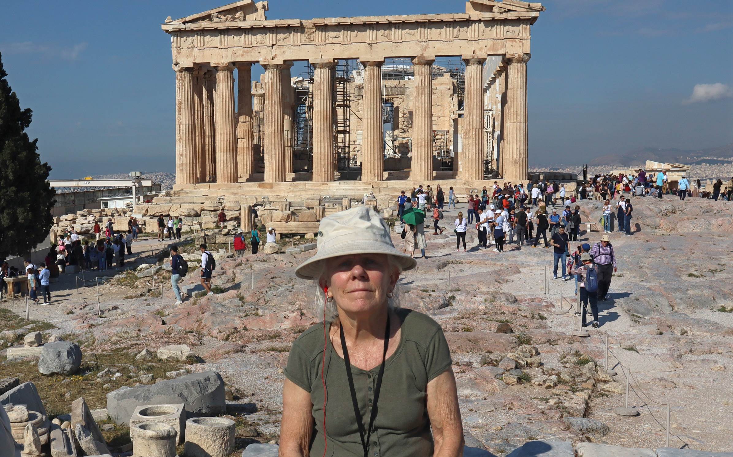 Some years back the original maidens were removed and replaced with exact copies, down to most of the missing pieces, but we would see the “real thing” later. At this point we were given about 30 minutes to wander around on our own before meeting back at the exit point. Susan and I wandered to the other end of the Parthenon to check the views there.
