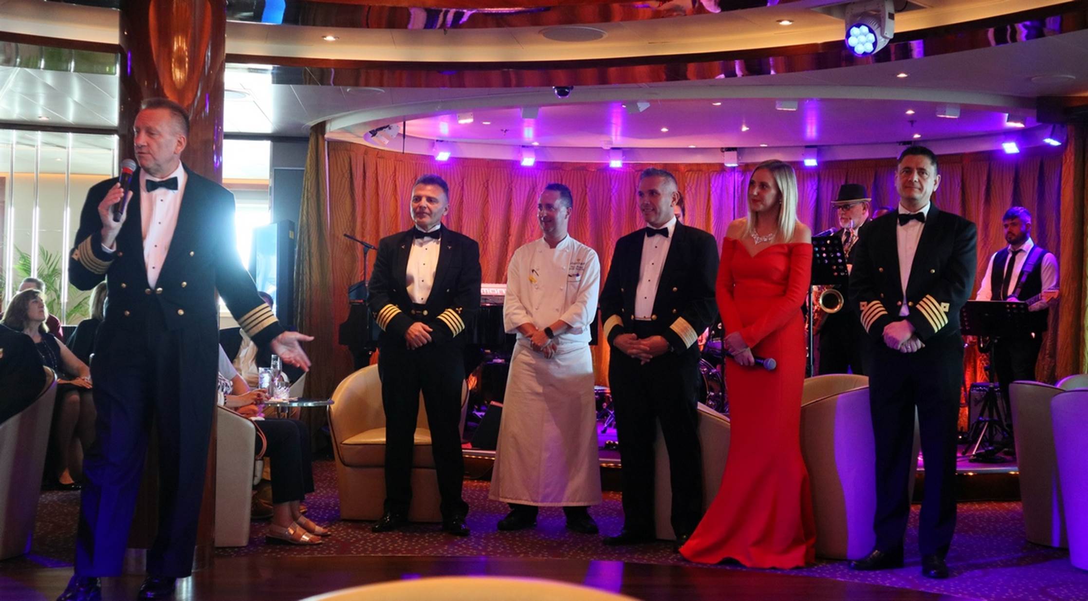 Ship’s captain. David Bathgate is speaking: Aimee is in the red dress.