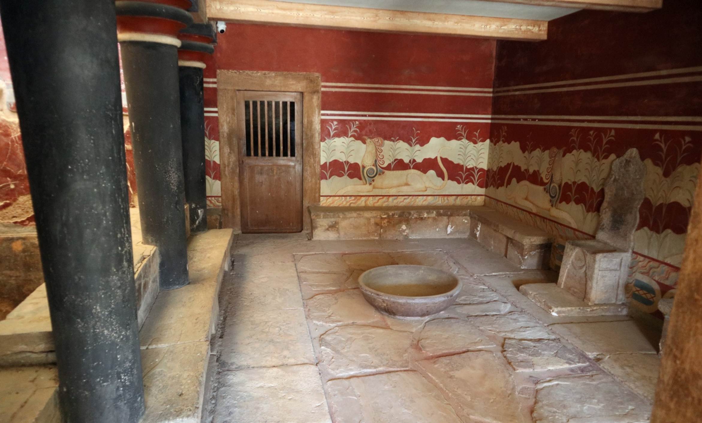 Notice the rather bright colors used in the throne room above. Although all the non-restored colors are faded or gone, this is what the restorers think the buildings looked like. The columns seemed to get these bright colors also.