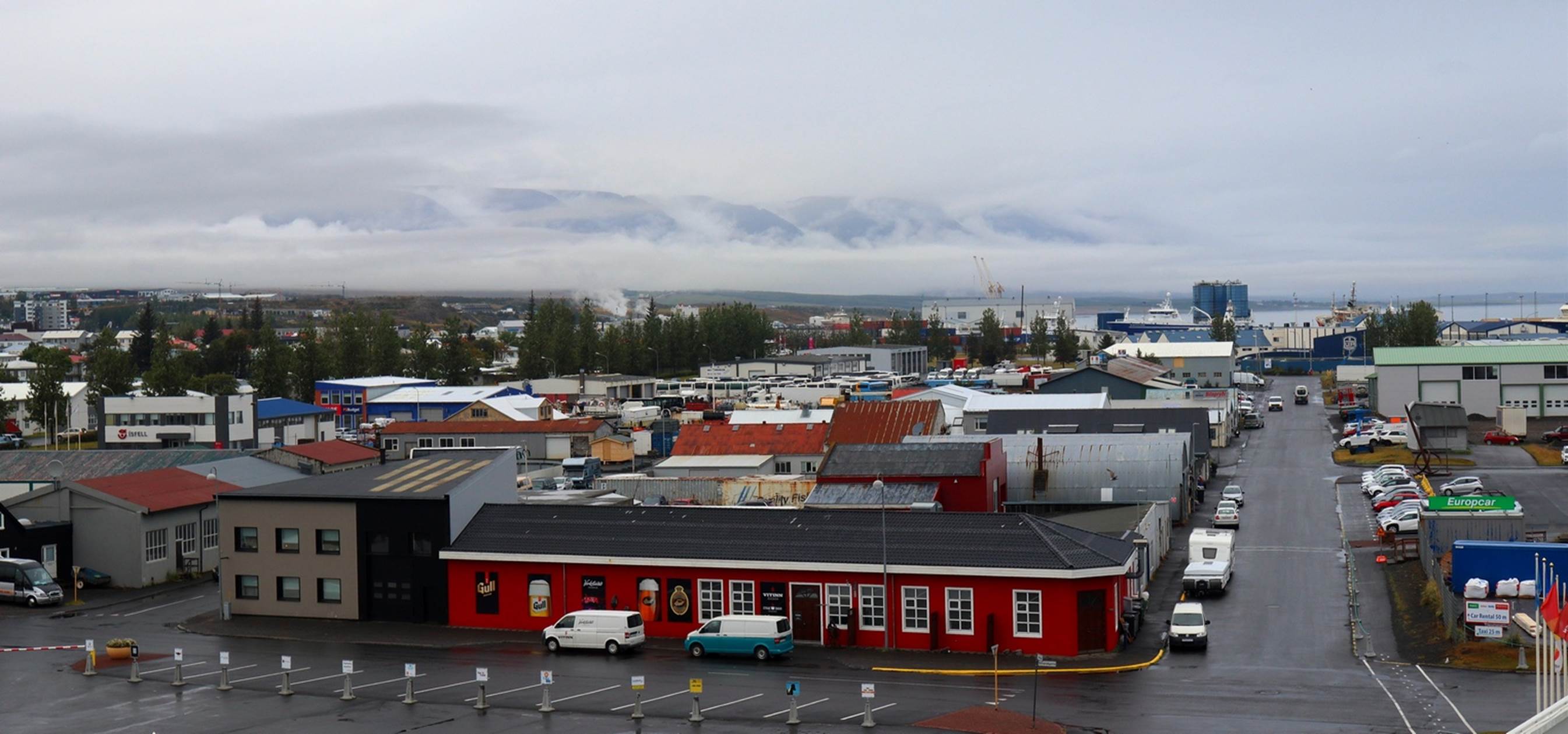 As we approached the port and town of Akureyri, a small but colorful tug boat came out to greet us and escort us into town. (You will see it later.) It was not really necessary, but seemed to be a pleasant and colorful welcome. Akureyri is the largest town in the northern parts of Iceland and, at 19,000 people, is the largest town outside of the capital region surrounding Reykjavik. Like most towns in the northern parts of Iceland, it was located well into a fiord and had a well-protected natural harbor.
