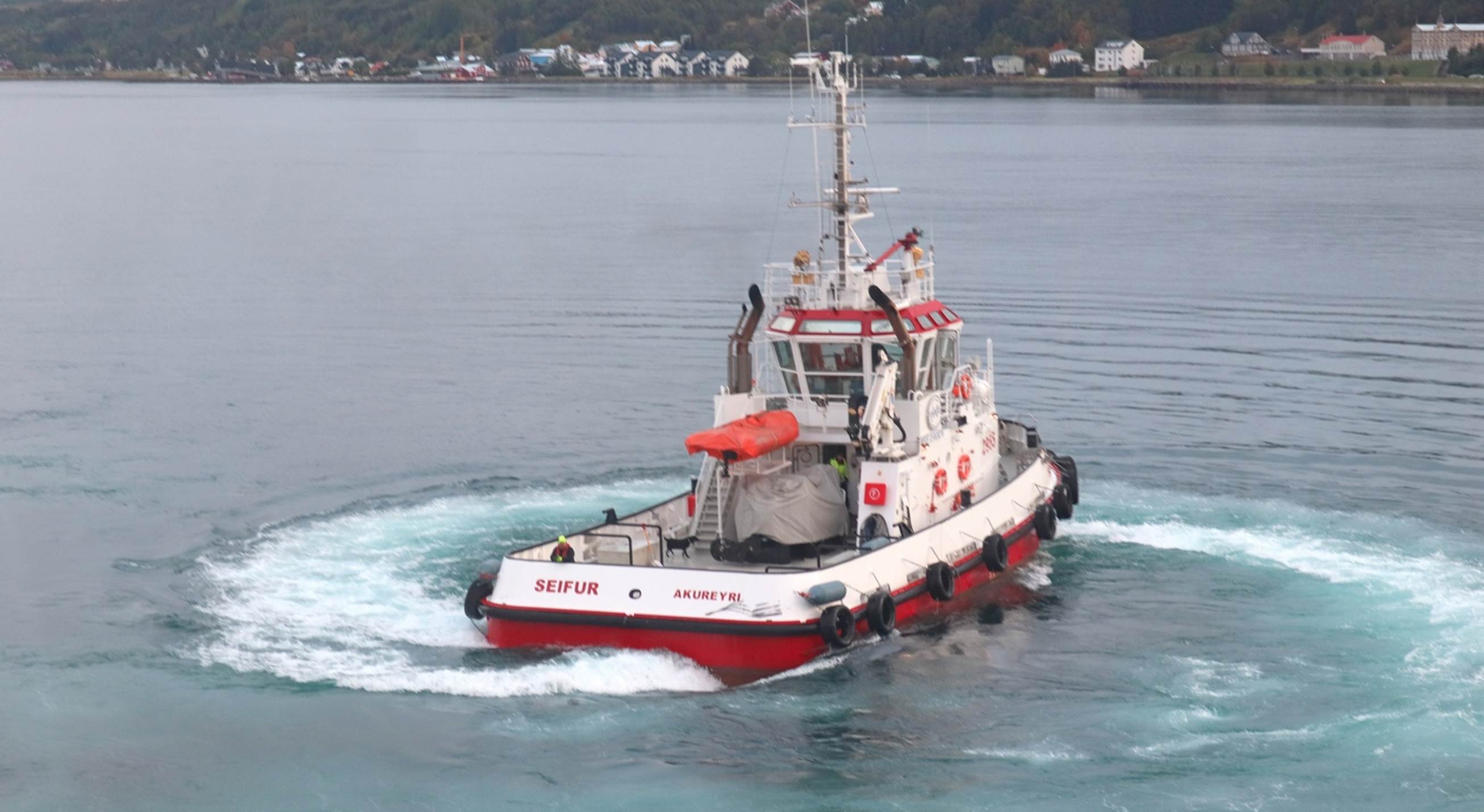 On the way out of the fiord, the little tug boat again kept us company for a while. This time, once we got in the open, the tug captain decided to show off the tug’s maneuverability by putting on a little dance. You’ll see what I mean in this short video.