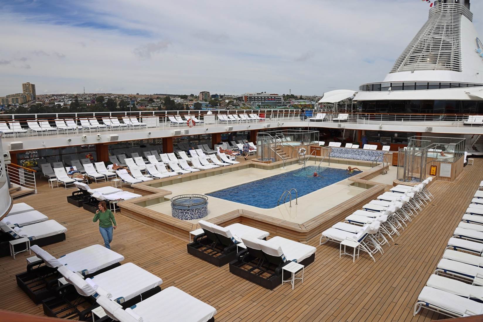The Marina is considered a mid-size ship at 785 feet long. The passenger capacity is 1250 people and we had a almost full ship on our cruise, probably around 1200 passengers. This full ship did cause some crowding problems, especially in the restaurants when poor weather made the outside dining areas unusable.