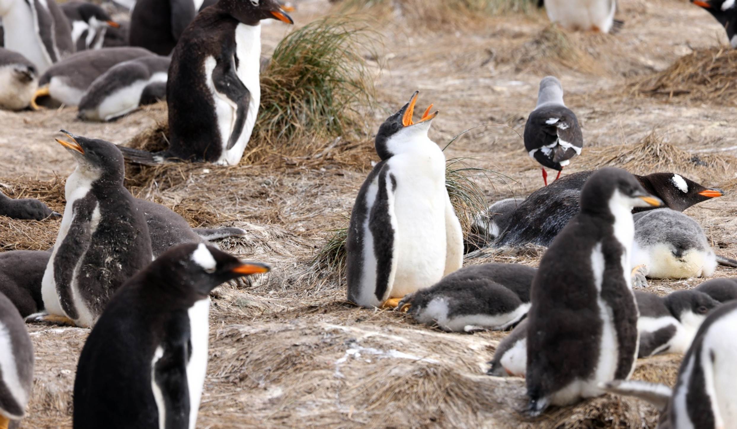 When we got to Bluff cove, we could see the penguins from a distance: there were hundreds of them, both adults and immature young ones. There were markers in the ground that showed where we could and could not go in order to not disturb the penguins. When a penguin ignored those markers and came out among the humans, we had to carefully make way for them and try to not get too close: they definitely had the right-of-way.