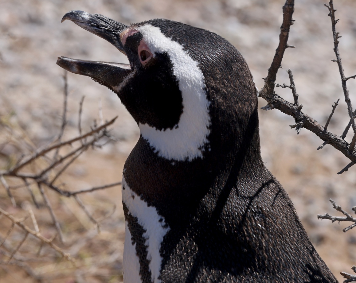 Punta Tombo is estimated to be home to about a million Magellanic Penguins, although there were far fewer than that when we were there. Magellanic Penguins tend to be burrowing animals and almost any little hole or opening in the ground would suffice for a nest; hollowed out areas around the roots of a bush seemed to be favored.