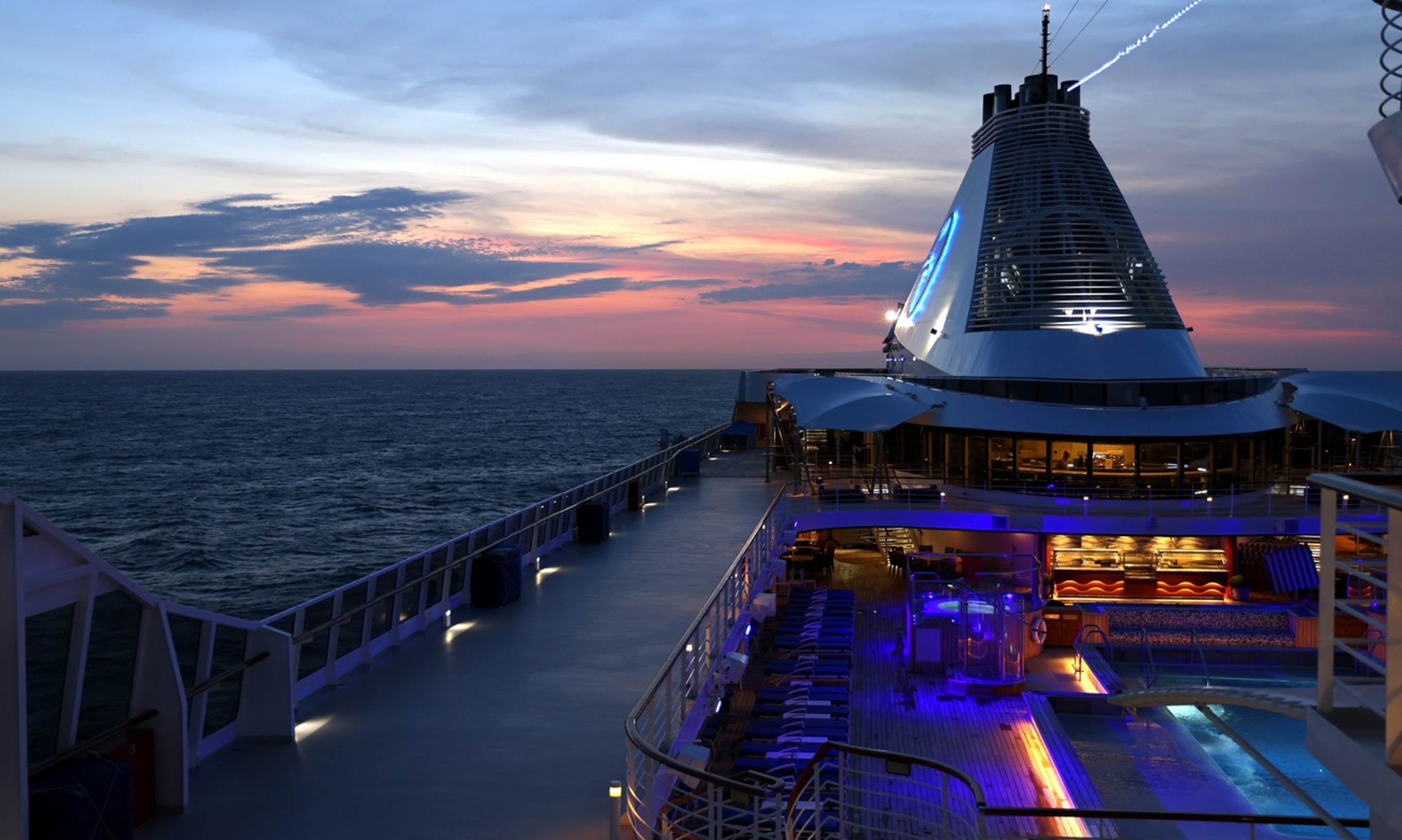Dinner this evening was in Jacques (French) specialty restaurant. We did have one of the more colorful sunsets this evening.