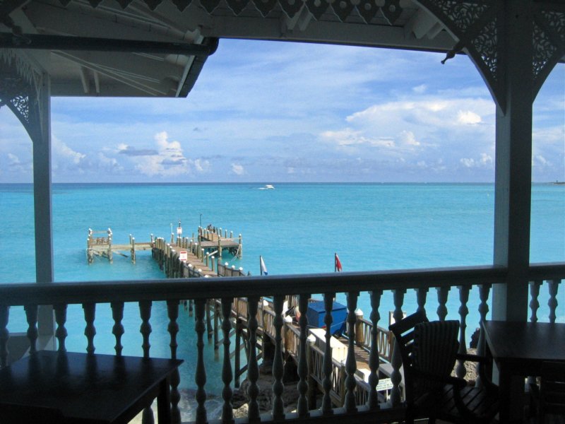 Around the pool area. Note that the concrete is wet from the earlier rain.
