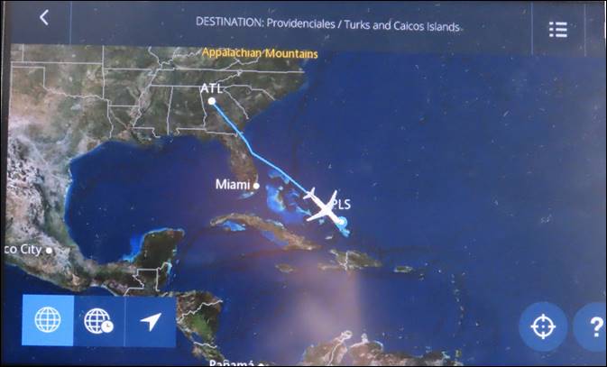 Our flight from Atlanta to Providenciales (”Provo”) was on time and reasonably comfortable. We had exit-row seats with the center seat (of the 3) empty, giving us a little extra room. One advantage of living in the Atlanta area is the relative ease of traveling almost anywhere in the world from the world’s busiest airport.