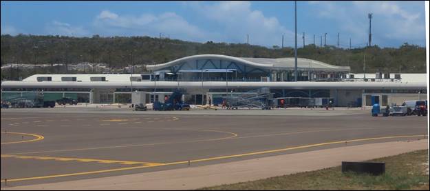 Taxiing to the Providenciales (PLS) airport terminal