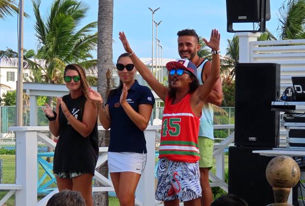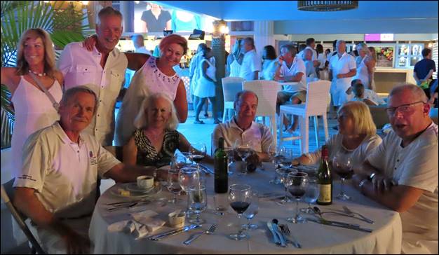 A standard practice for several years is to have a special “reception” for GMs who come often enough (and spend enough money) to qualify as “Gold members”. In the past these receptions have been on one of the docks or in some open area. This time it was held in and around the CdV’s residence. While that sounds nice, it was a really bad idea because the space was very crowded and had multiple levels so people, especially ladies in heels, were frequently stumbling and almost falling. It would have been fine for 8 or 10 people, but not for the 25 or 30 who were there. Also, in the past some of the Club Med “management”, including the CdV, would mingle with the GMs so we could discuss any issues, problems, or just plain questions. This time, there did not seem to be any of the management team above the team leaders, such as Luis, Chief of Sailing, in attendance. Autero, the CdV, stayed at the entrance, welcoming people as they arrived and saying goodbye as they left, but not getting into any conversations. Perhaps the management team does not have time to talk to the guests.