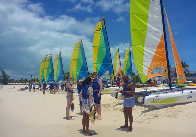 Our primary activity is sailing and we had a pretty good week for that. The wind was reasonable most days and it was generally an off-shore (easterly) wind, so there were not many waves on Grace Bay. It always helps to know the sailing GOs and have them know you. We had met the Chief of Sailing, Luis (“LuLu”) in Cancun a couple of years ago and he remembered us and knew that we could sail fairly well. We had also met Emily previously and quickly got to know Fizz and Coco. There were a good, friendly, and hard working sailing team.