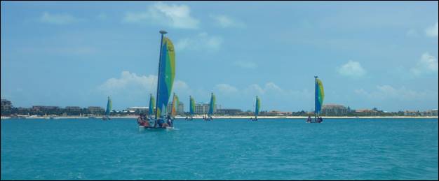 We had 2 other couples on the Hobie Getaway with us and we gave them some history and information about the Grace Bay area as we sailed to Iguana Island. Even with 6 people om the Getaway, it is still faster than the smaller Hobie Waves (with 4 people) so we had to intentionally slow down most of the time.