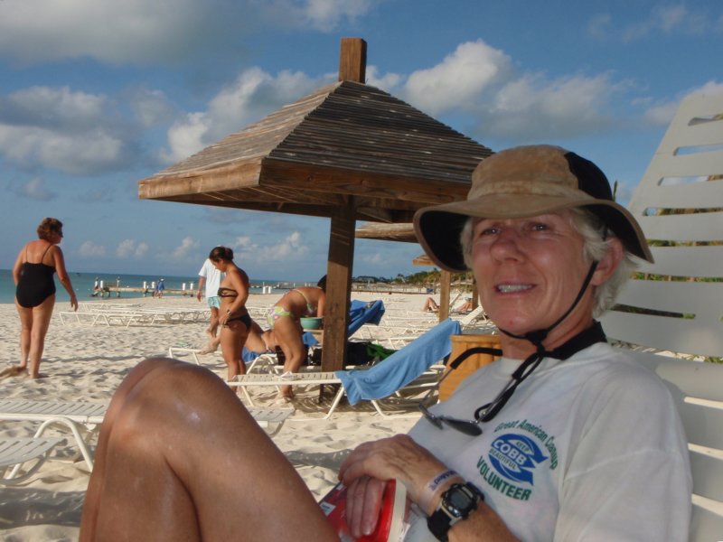 A view of the sailing beach in the afternoon after the sails are down and put away.
