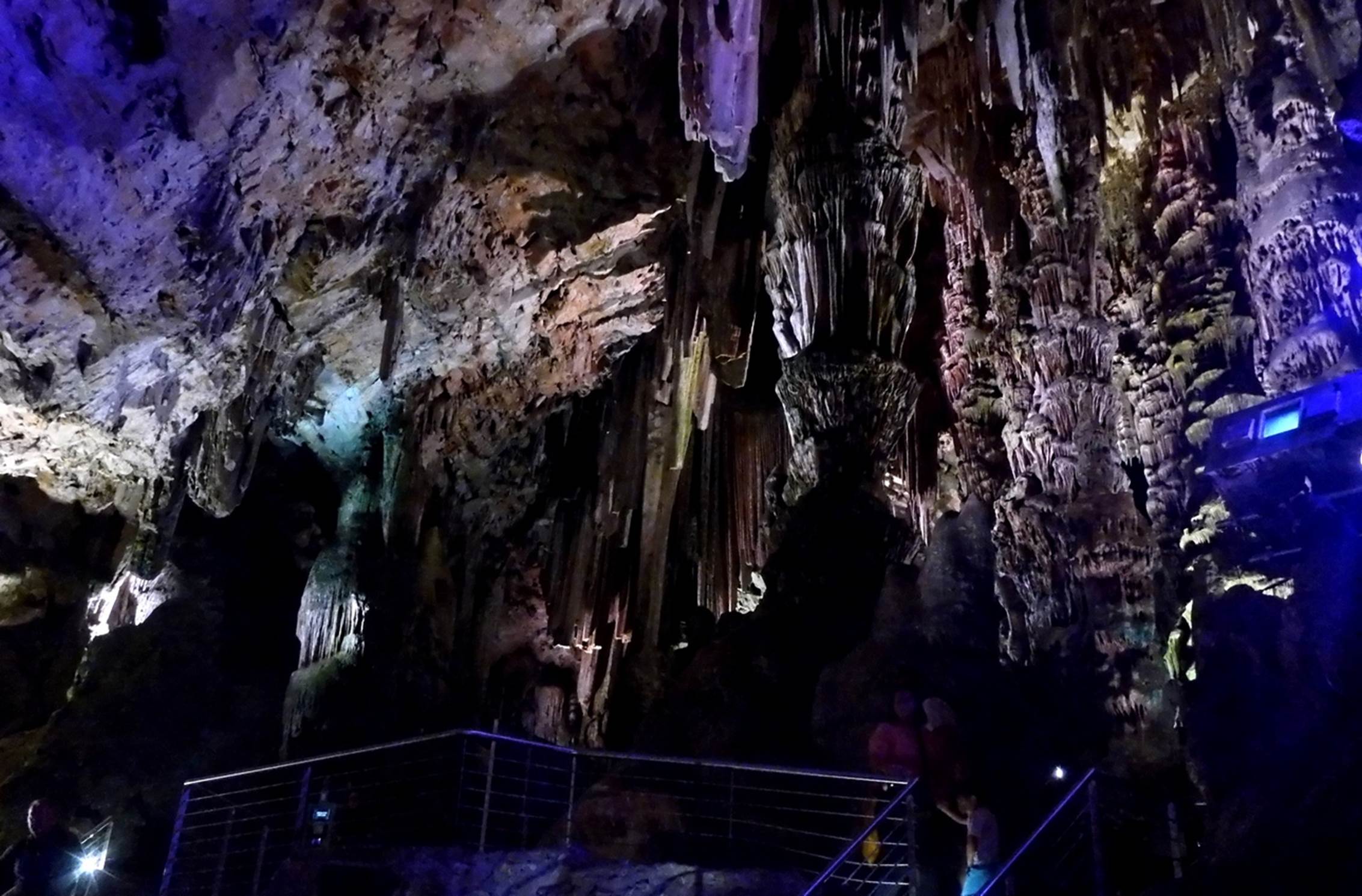 The walk down from the Top of the Rock to St Michael’s cave was probably about a half mile and at a fairly steep downhill slope, down to the 980 foot level of the cave. When we got to the gift shop at the cave, the tour group took a 15 minute rest, snack, and shopping break. After the break, our adopted tour guide led the group into the cave and provided a running commentary, as well as appropriate warning about the slick, wet surface under our feet. The cave is so named because some people believe they can see the form of the Archangel Michael in the rock formations. Colored lights are now used to make the angel’s form more apparent as well as to enhance other areas of the cave. Although there is some reason to believe that ancient people knew of and used the cave, recent knowledge only dates back to World War II when it was discovered by engineers blasting a tunnel in the rock.