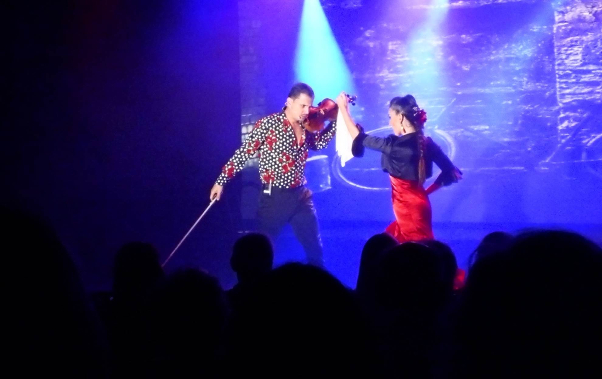 Another late lunch (with Emily & Murray) in Wave Grill and good relaxing the rest of the day. The evening followed our usual pattern with drinks in Martinis, followed by dinner in the GDR, enjoying the primary entertainment in the main lounge, and finally enjoying some late night Latin music in the Horizon Lounge. Backing up just a little, the entertainment was sort of interesting/cute with, I believe, a husband and wife team: he is a violinist and she a dancer. They told a minor story and played off against each other in a cute manner. You can get a better idea just how it went in this composite video of the performance.