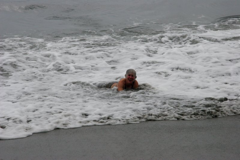Lee and Susan head into the water. They reported that the water was nice.