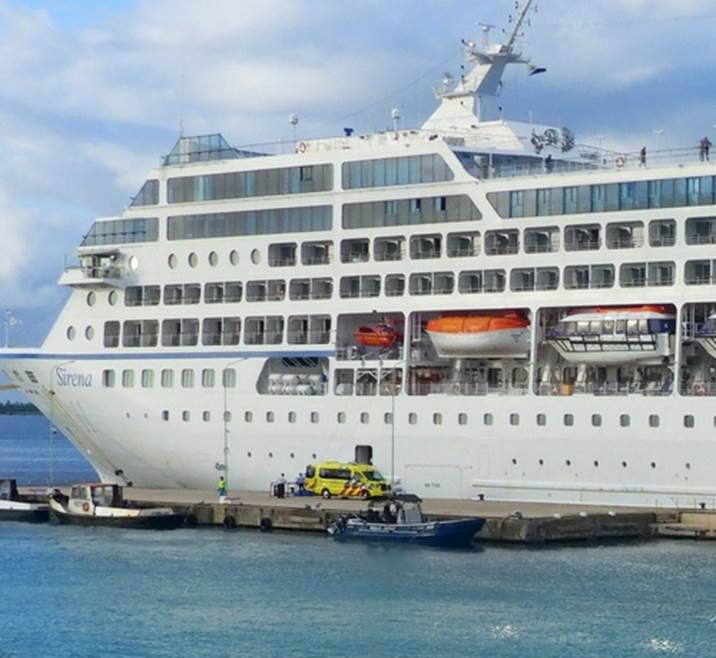The Sirena is considered a small cruise ship by today’s standards, at 594 feet long and accommodating 684 passengers and 400 crew members to take care of them. Oceania is considered one of the five “Ultra Luxury” cruise lines although, from our viewpoint, the definition of “luxury” can be very different between different people. The Sirena and, I assume, the other Oceania ships do provide very good services and a well-appointed ship but not always the atmosphere that we most enjoy. The physical facilities, such as our cabin, also had some shortcomings.