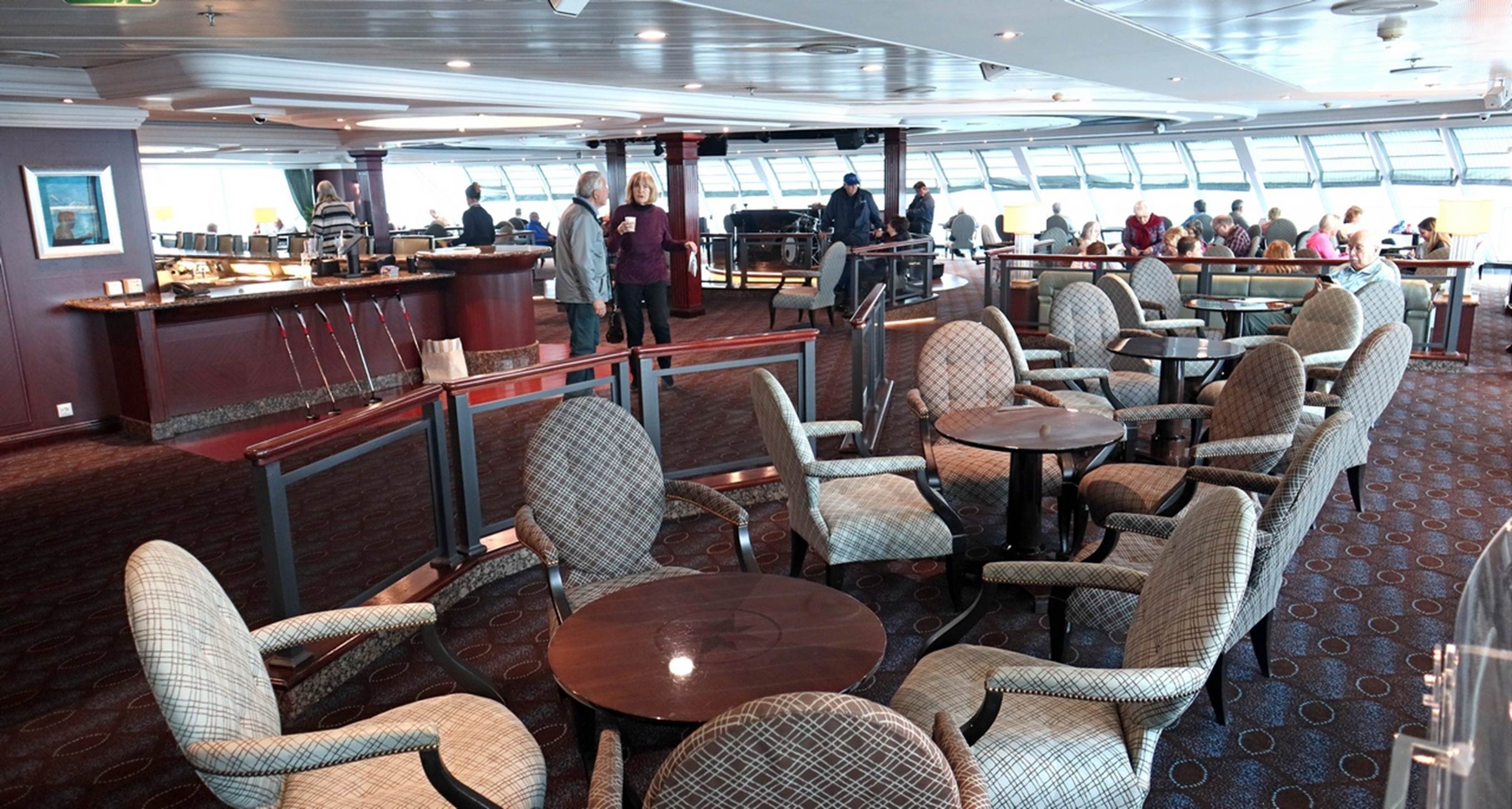 There are several other dining and drinking places on the Sirena, such as the coffee shop, Barista’s, just outside the entrance to the Grand Dining Room. With the cool weather we encountered, we visited this location about daily for some very good coffee. There is also the Waves Grill and Waves Bar on the pool deck. Since both of these have open-air seating, they were little used on our cruise but would be very pleasant in a warmer climate.
