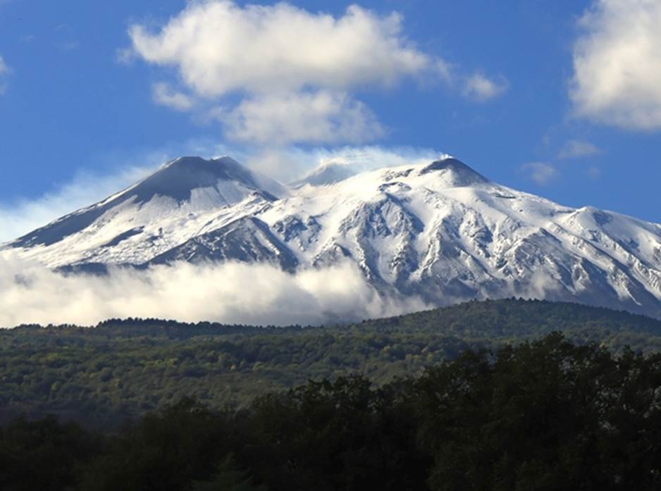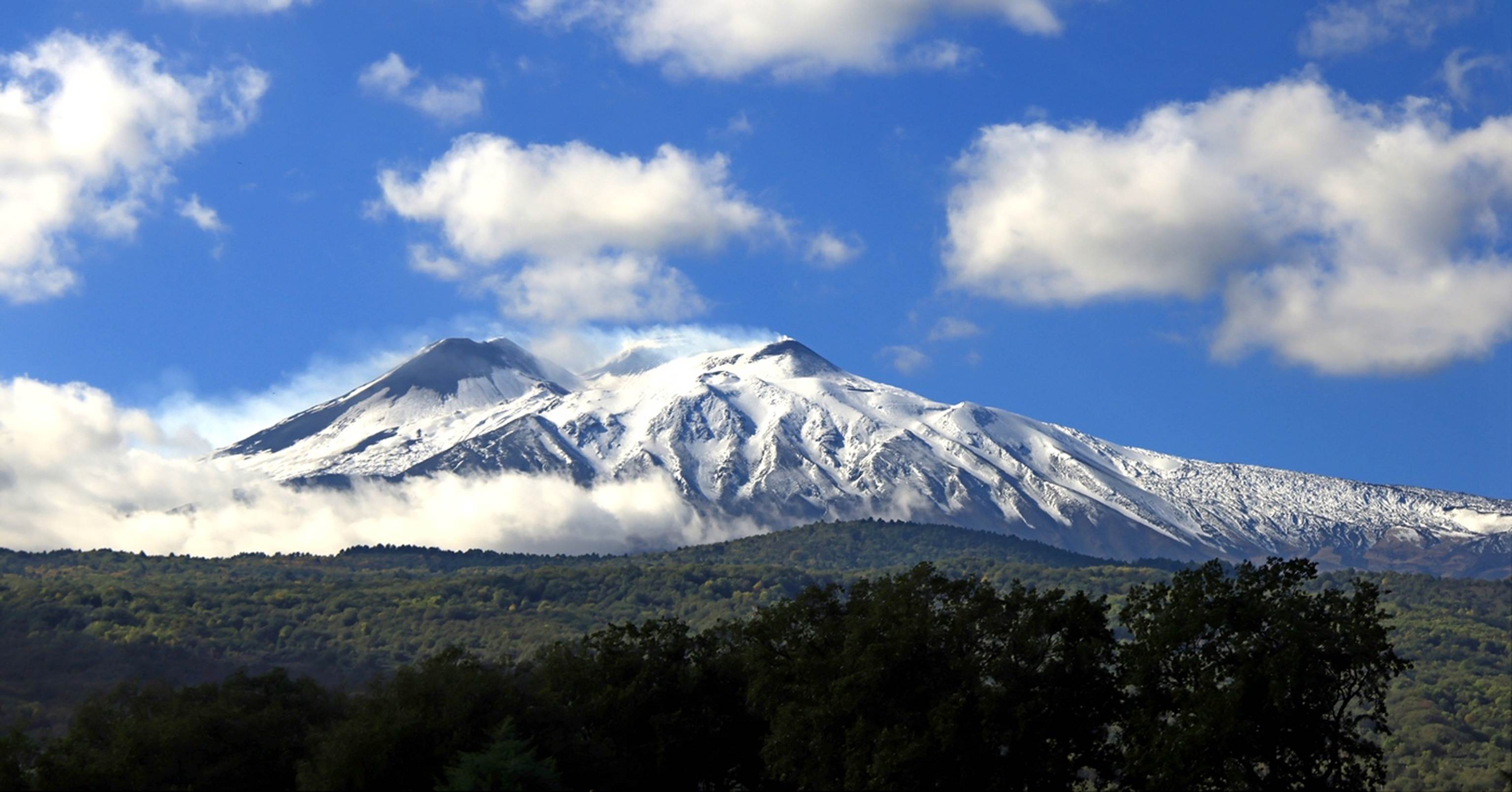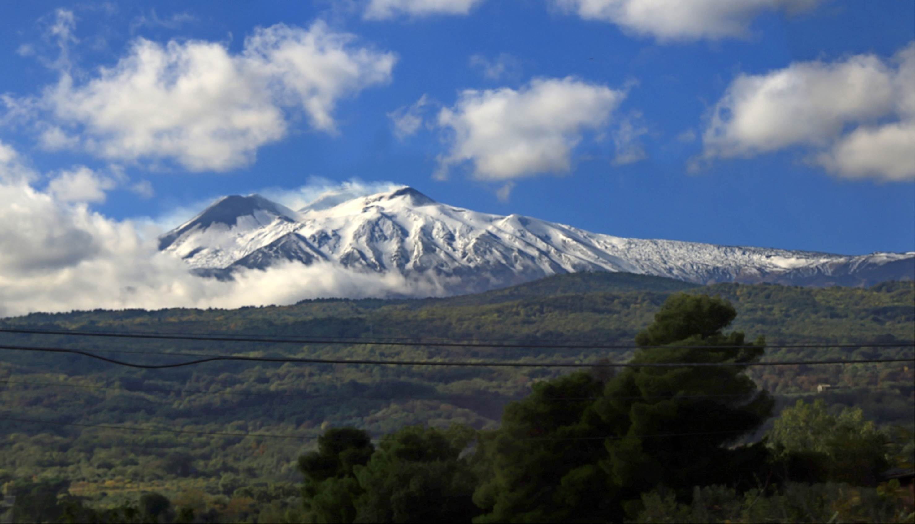 After riding almost an hour, we stopped for a rest break and, hopefully, to get some photos of the Mt Etna peak. Unfortunately, there were too many clouds in the way and there was not really a good view of the mountain from here without lots of utility poles and lines in the way. After getting restarted, the bus soon got off the main highway and we started going through some small towns and rather small roads. I did finally get a couple of decent photos of Mt Etna from the bus, although they are not really as sharp as I’d like because the bus was bouncing along some rather rough streets.