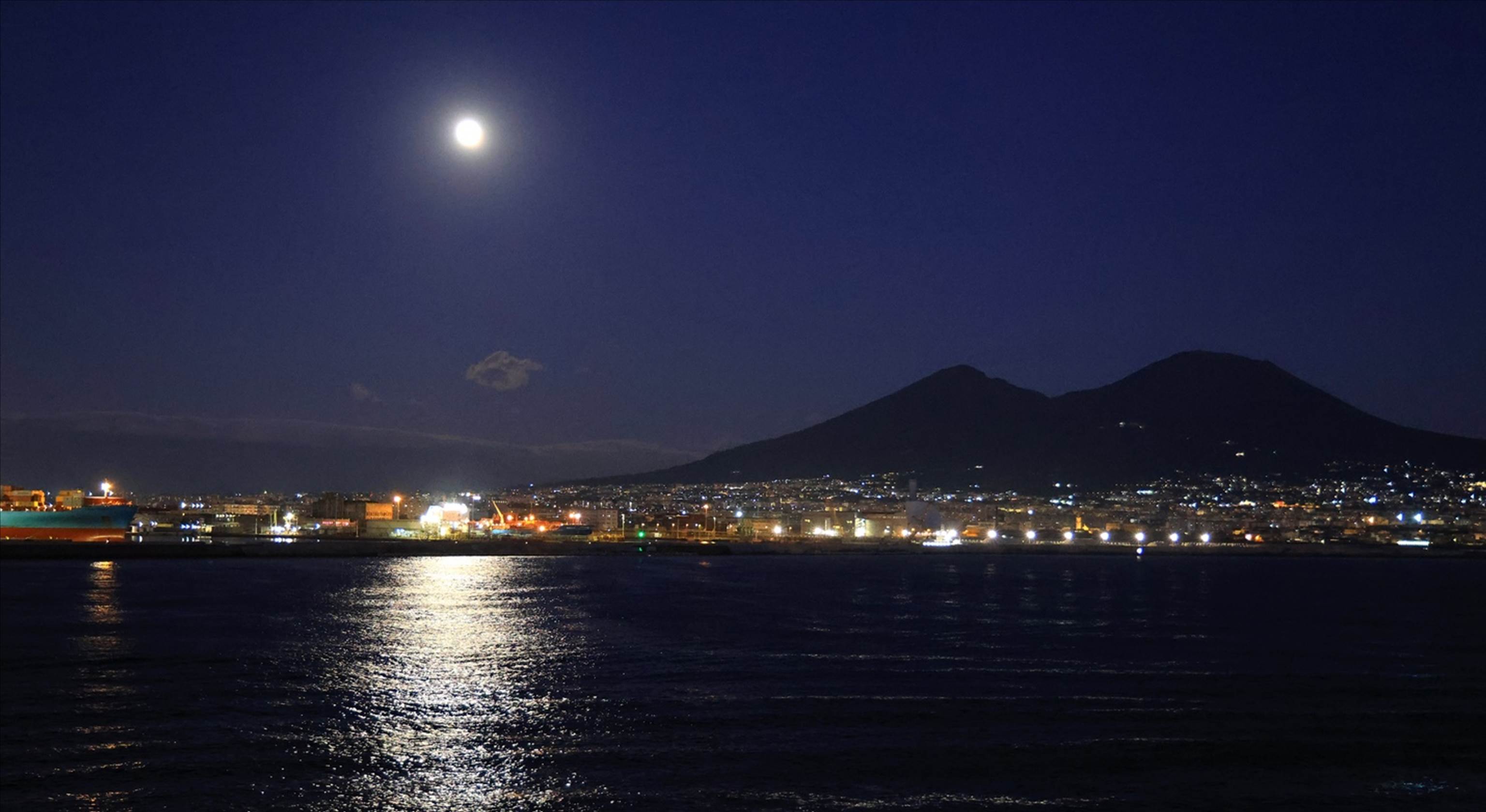 We leave the moon, Naples, and Mt Vesuvius behind.