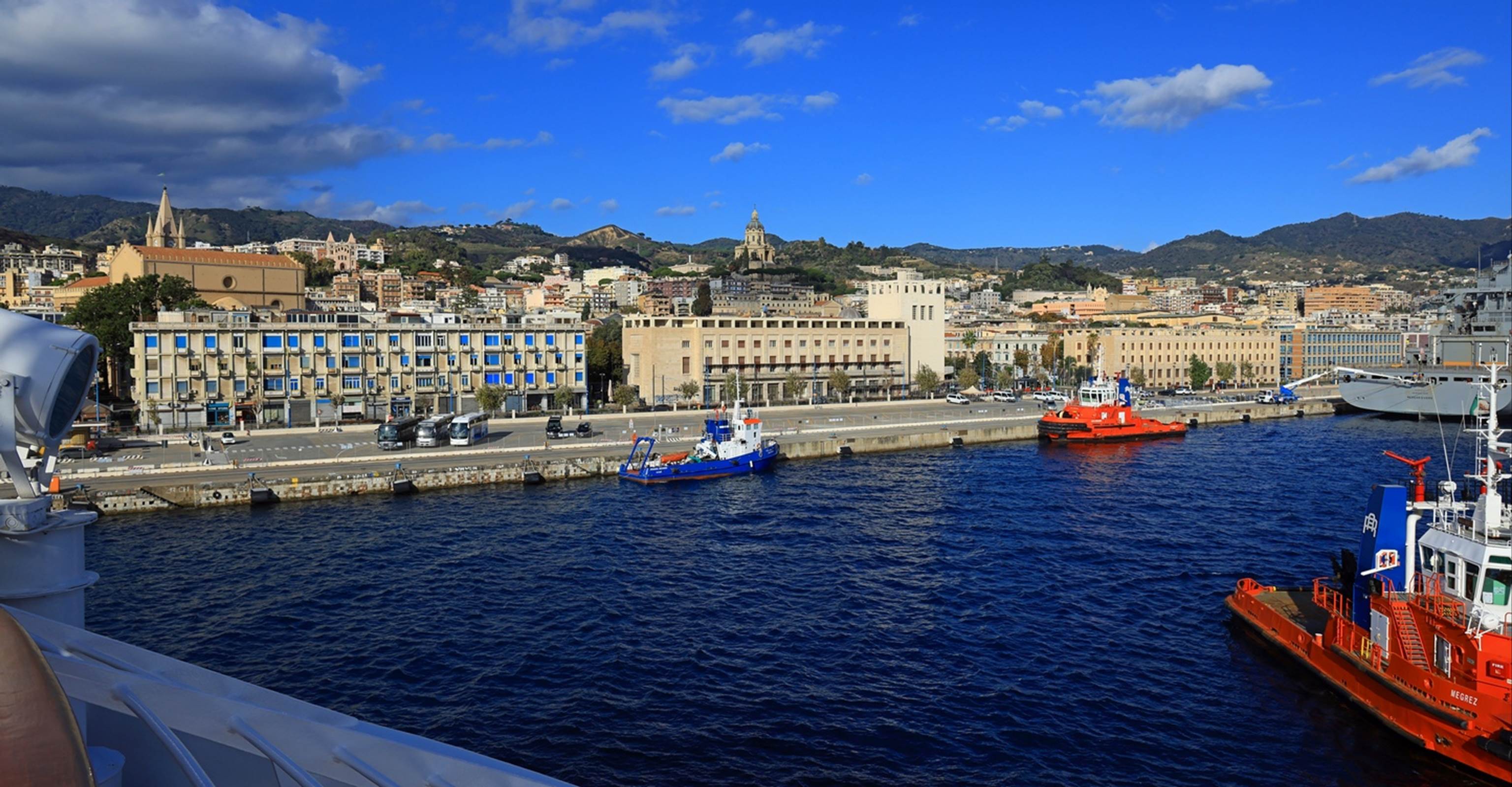 Docking in Messina harbor. We ended up about where the little blue tug is now.