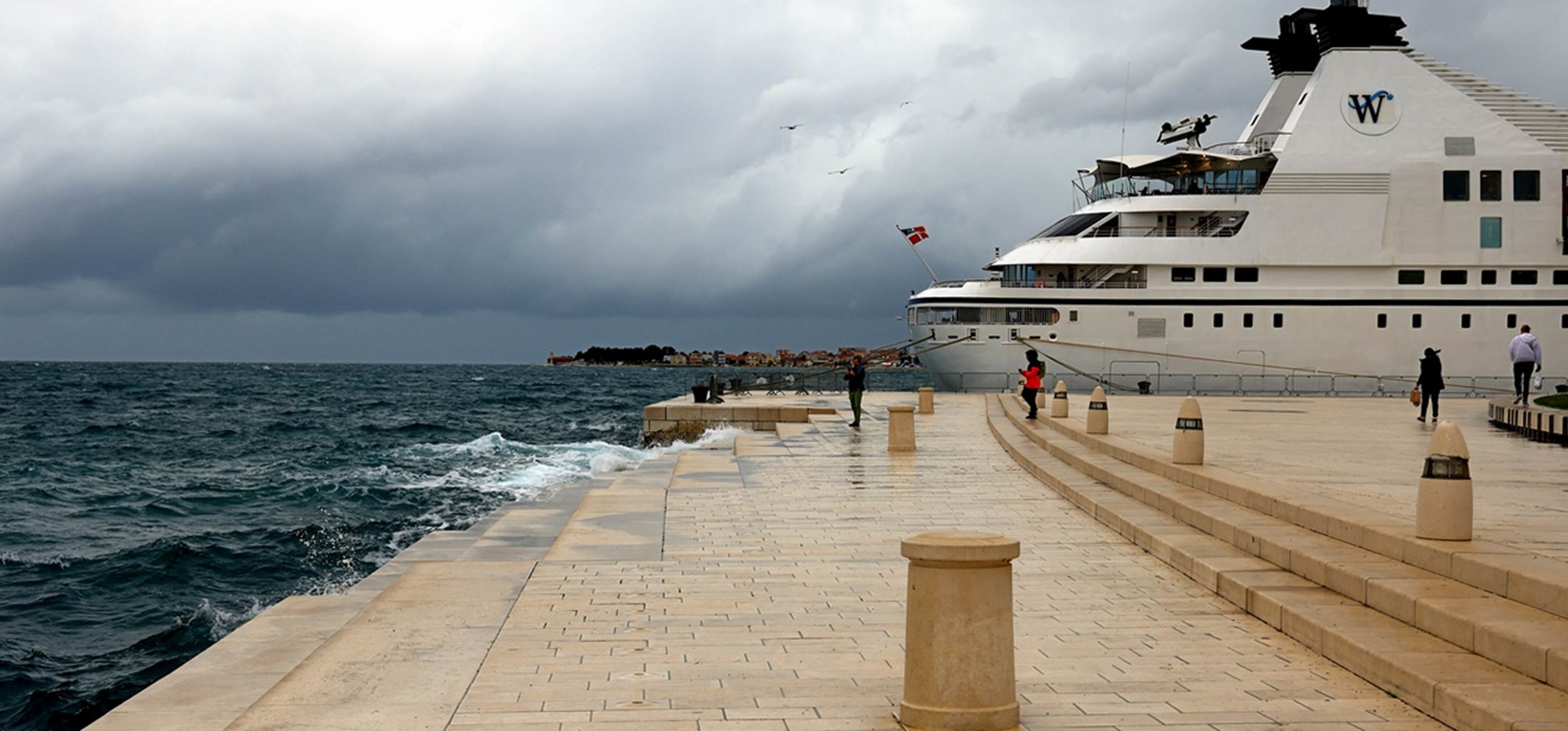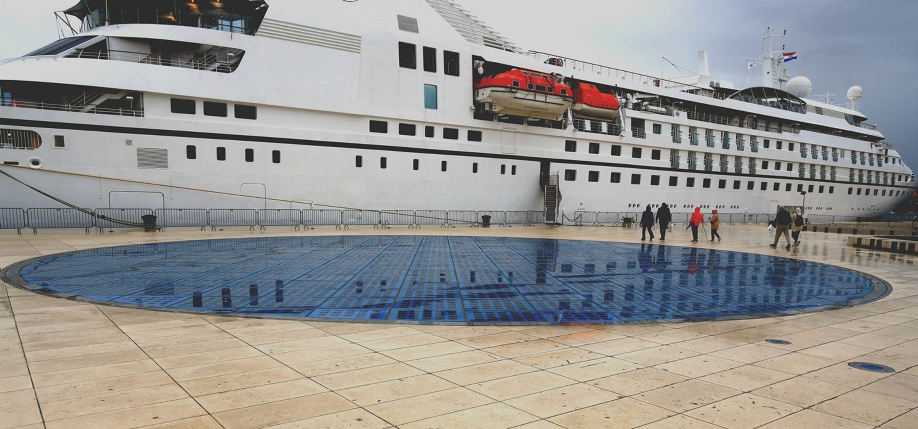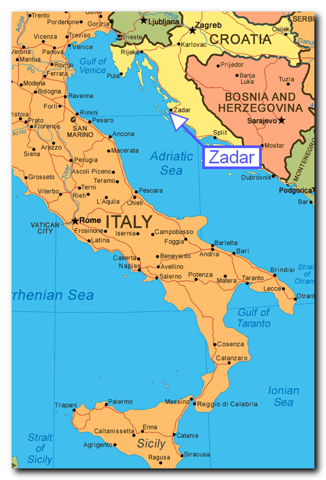 Since leaving Dubrovnik, we had sailed Northwest along the coast of Croatia to the relatively small city of Zadar. While Zadar is certainly not a large city, it, and some nearby villages, does have a significant place in the history of Croatia. Today we would be on an excursion that would visit the salt pans of Nin, as well as Nin itself, then stop at a winery for lunch (and wine, of course), followed by a short tour of the Old City of Zadar. The Old City of Zadar is on a small peninsular while the newer parts of Zadar are on the mainline side, just across a harbor. The Star Legend was docked at the very tip of the peninsular in a convenient location for visiting the old city as well as enjoying some very new features of Zadar.