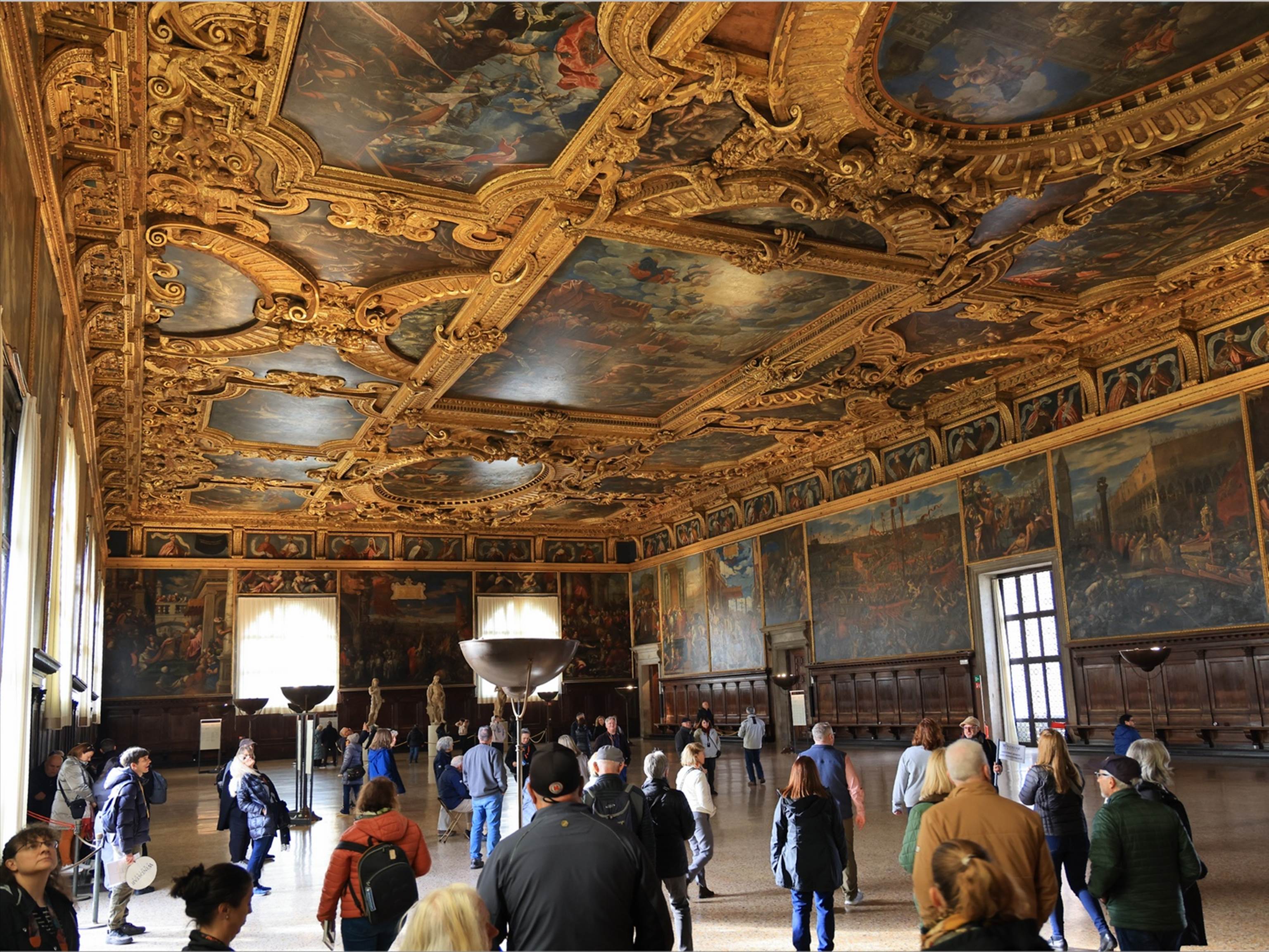 Our guide provided quite a bit of the history of the palace while we stood in front of the building and then we entered the palace grounds. There was essentially no wait to enter: on our other visit to Venice in September, 2021, there was always a long line awaiting access, although that was not a busy tourist time either.