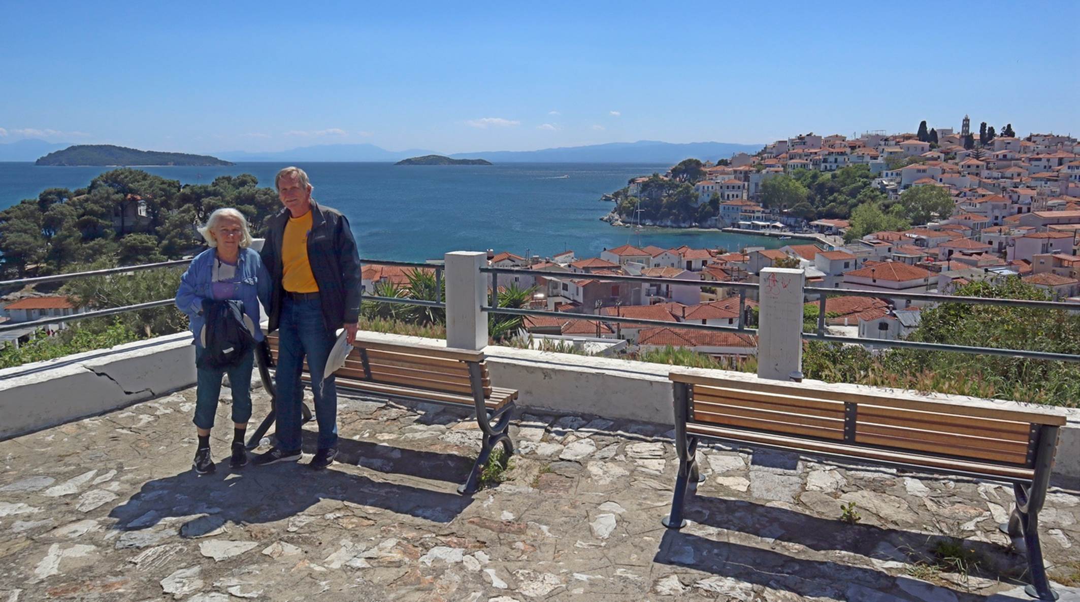 About 9:30, the captain announced that we were abandoning Skepolos and heading to the small island of Skiathos, about 25 miles away so we would arrive there about noon. We relaxed for a while then had a fairly early lunch as we arrived just outside the harbor of Skiathos, where the wind and water conditions were much better.
