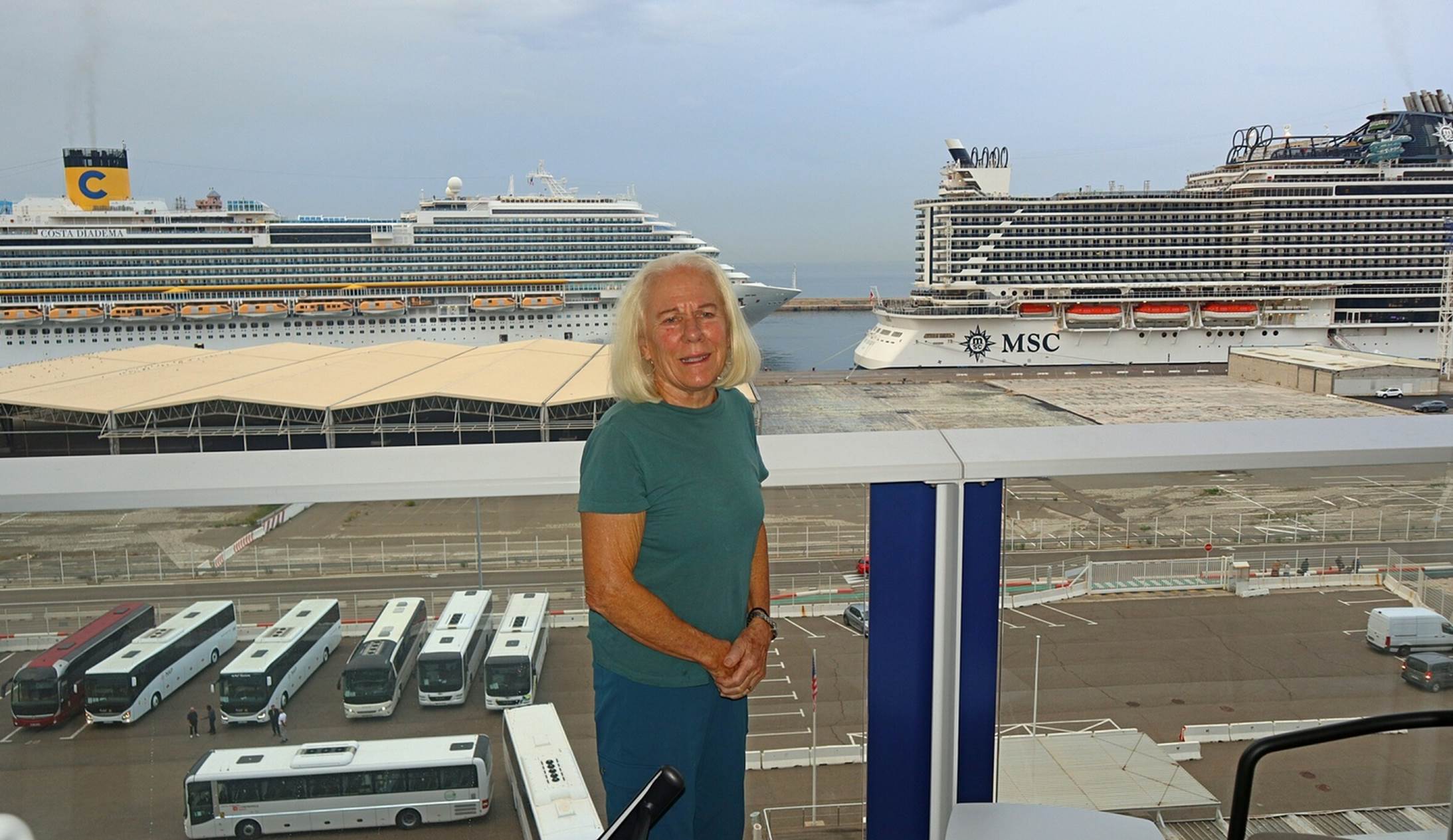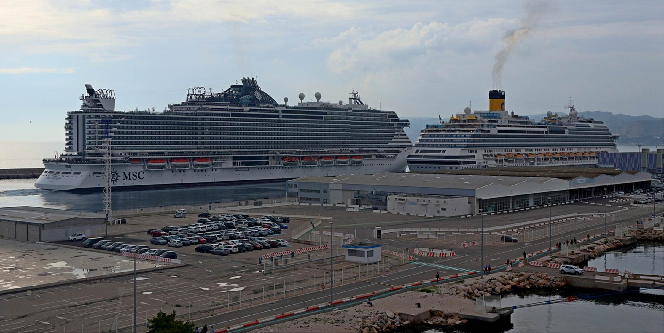 The photo above gives a good idea of the size of the palace complex in the relatively small Avignon village but this video may give an even better feel for it. Time to head back to Marseille and the Beyond, so we got back in the car and arrived back to the port in midafternoon. Back on the beyond, we relaxed and had a glass of wine on our veranda. About 5:00 things started happening… the ships were leaving port, including ours. Seeing these large ships maneuver themselves around the docks and other ships was interesting.