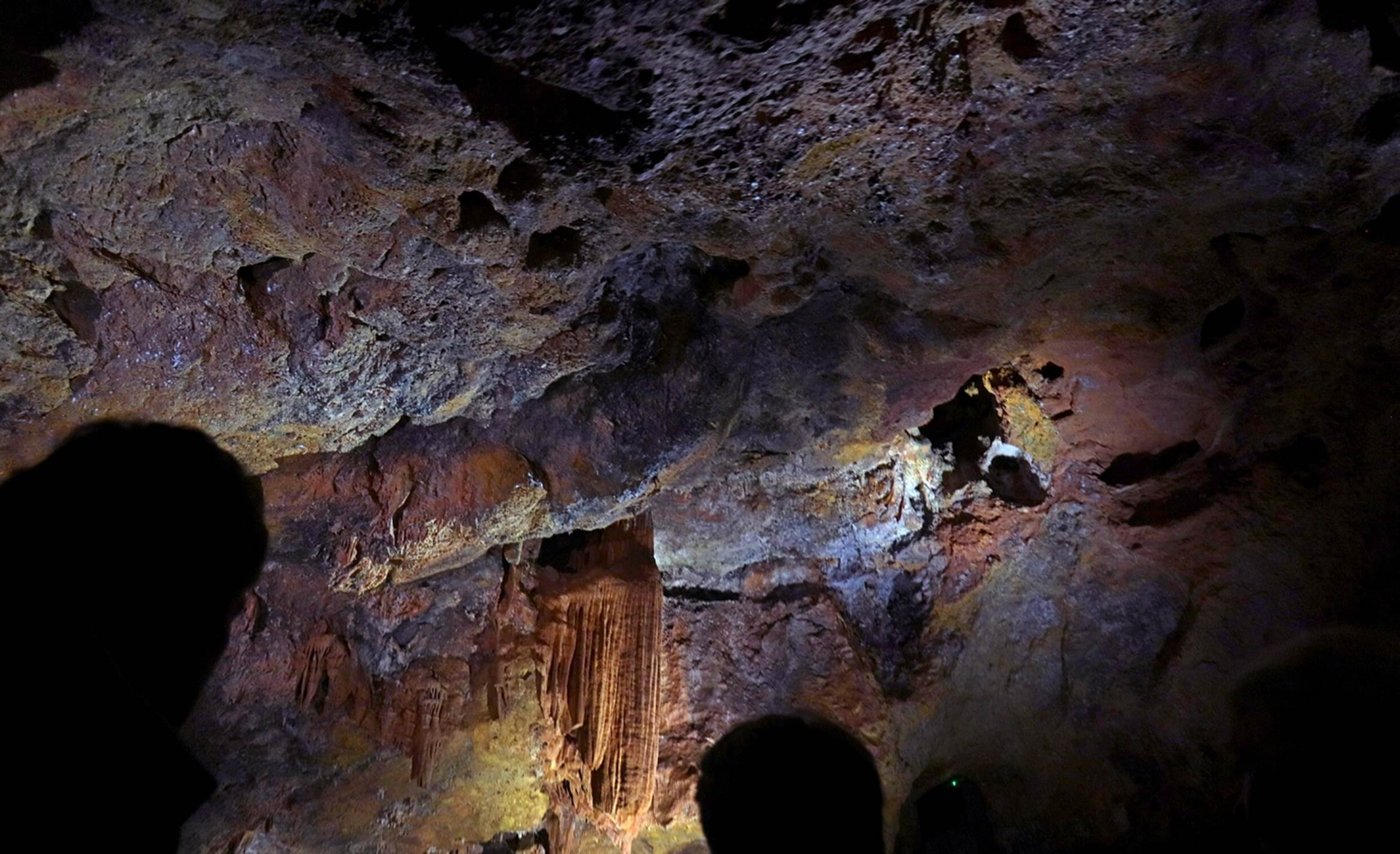 It was very dark inside and the only way you could see anything was the occasional spotlights that were trained on various formations of colorful rocks. You should get some idea of the darkness and lighting in this video from the moving boat. We rode for about 10 minutes then came to another little dock where we were supposed to get out and take a walk. It was a little “sketchy” because it was dark, the ground/walkway was wet, and we could not see the ground or very far ahead of us, but there were some interesting formations. After walking for about 7 minutes, we came to another little dock where we reboarded our boat to continue the water-born part of the excursion.